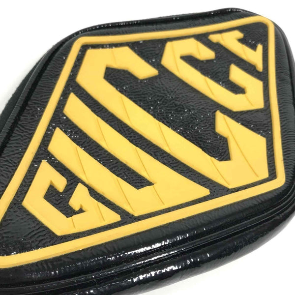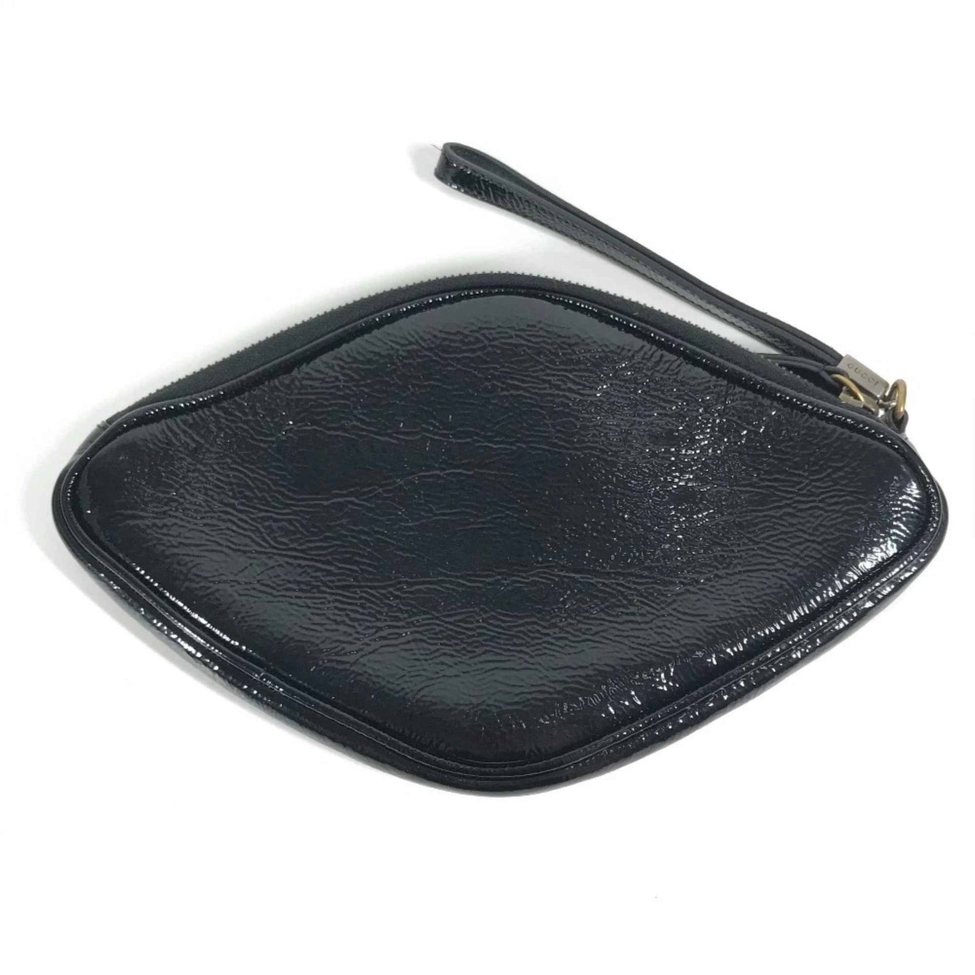 GUCCI 524316 Game List Logo Strap Pouch Clutch Bag in Patent Leather/Rubber, Unisex, Black