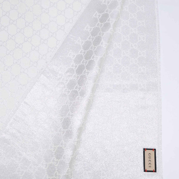 GUCCI 623161 GG Lamé Large Stole in White and Silver for Women