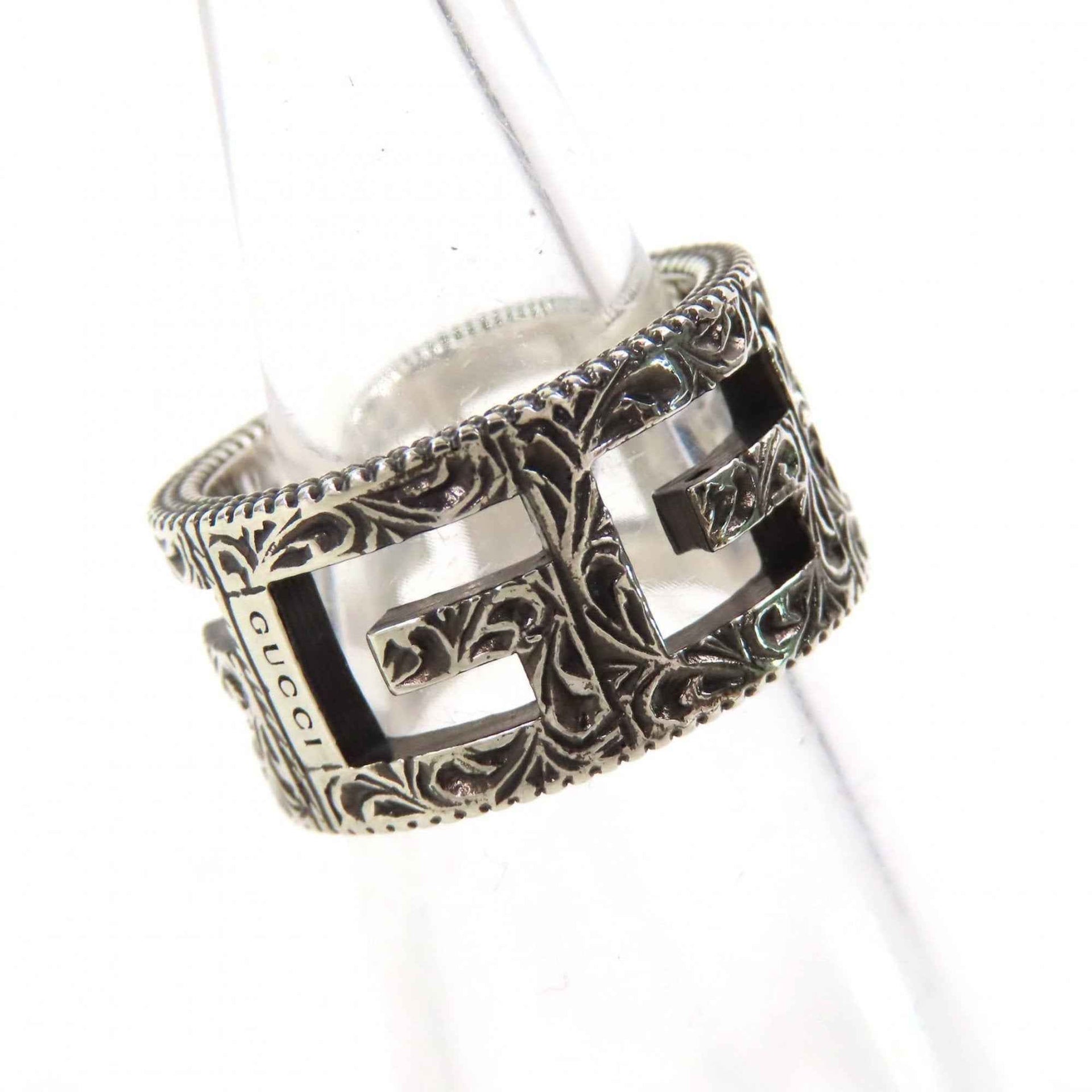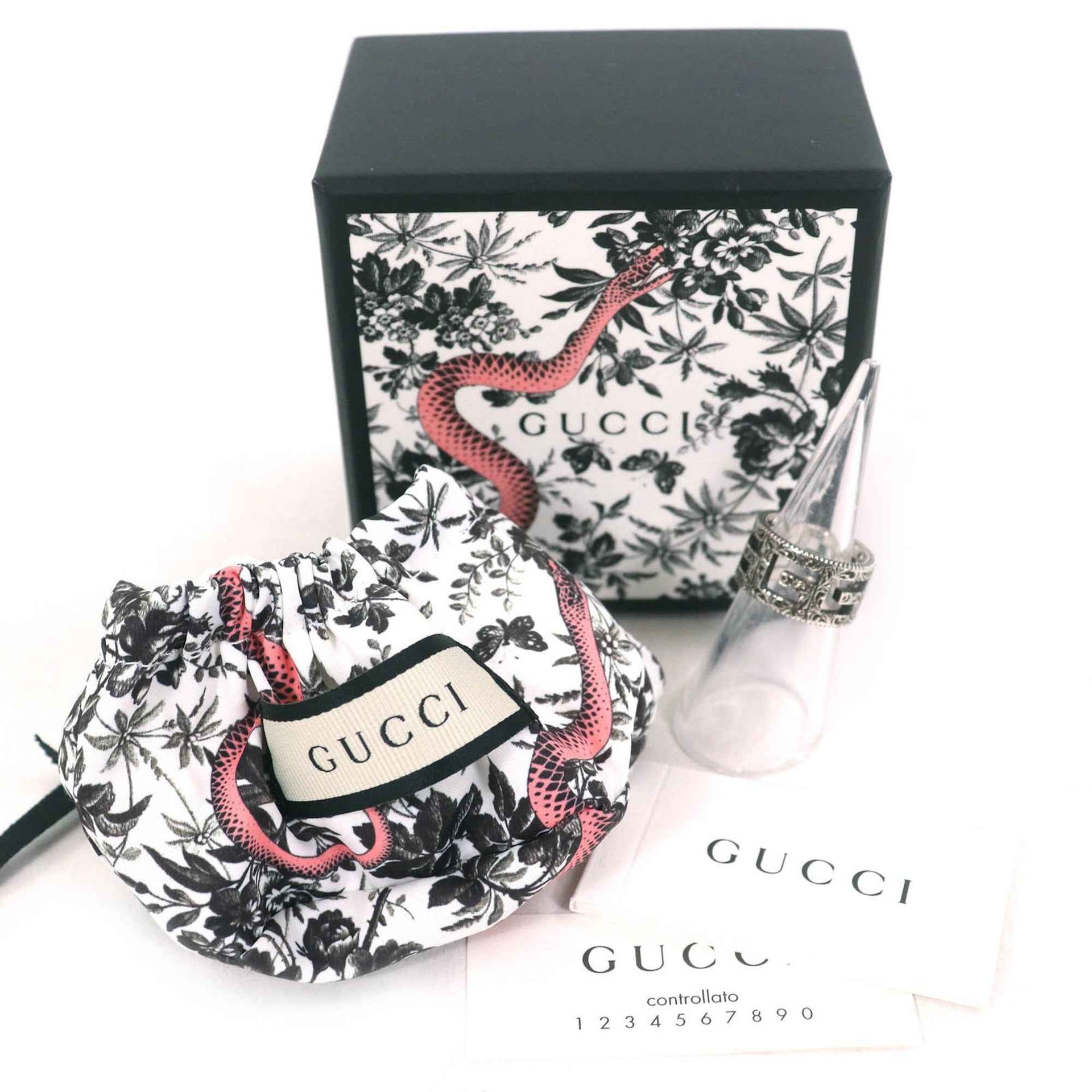 GUCCI Arabesque Square G Ring, AG925 Silver, Size 11 (approximately equivalent to Japanese size), Made in Italy, Weight 7.8g, Includes Box and Dust Bag, Women\'s