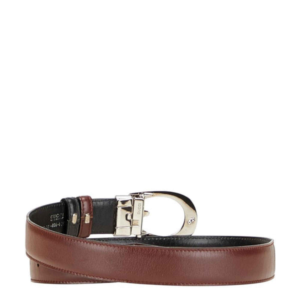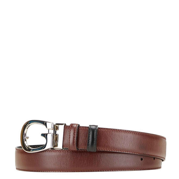 Gucci G Buckle Belt 80.32 036 1450 1103 Wine Red Silver Leather Women\'s GUCCI