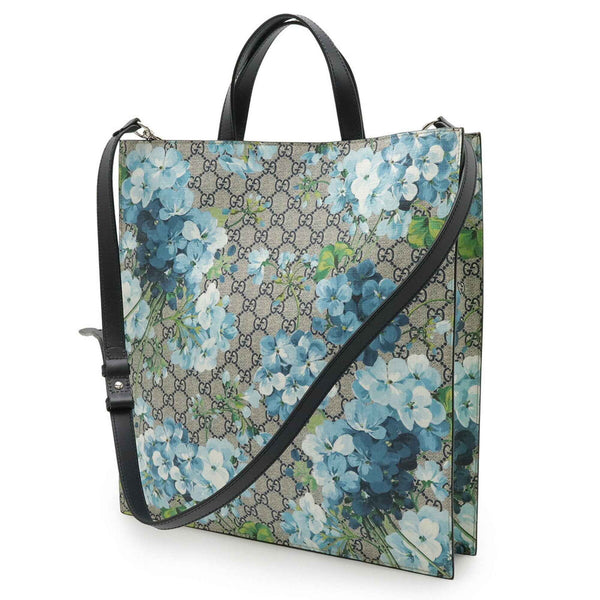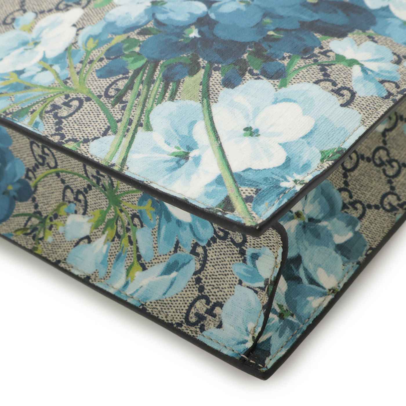 GUCCI GG Blooms Tote Bag Shoulder PVC Leather Flower Beige Blue 546325