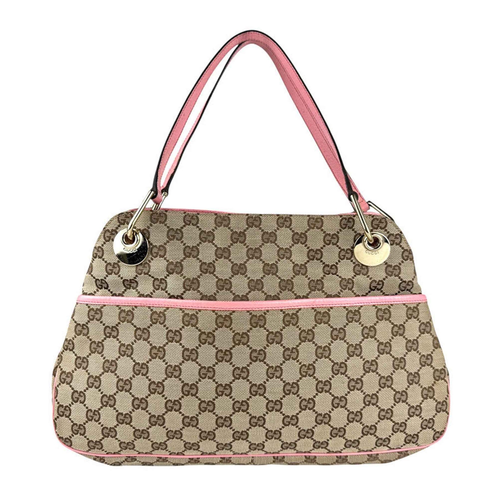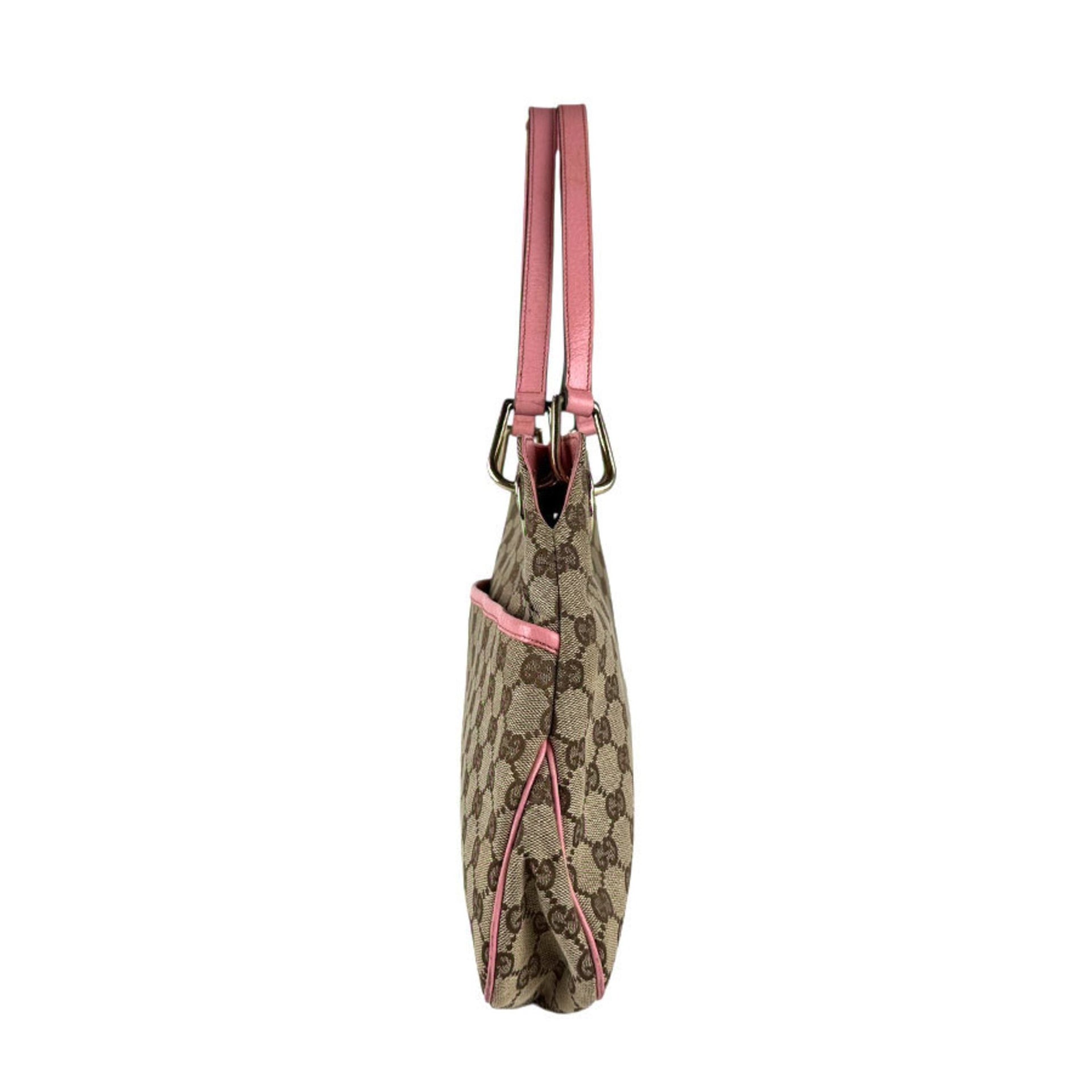 Gucci GG Canvas and Leather Shoulder Bag in Beige Brown, Pink, Gold, Women\'s, 121023 z7271