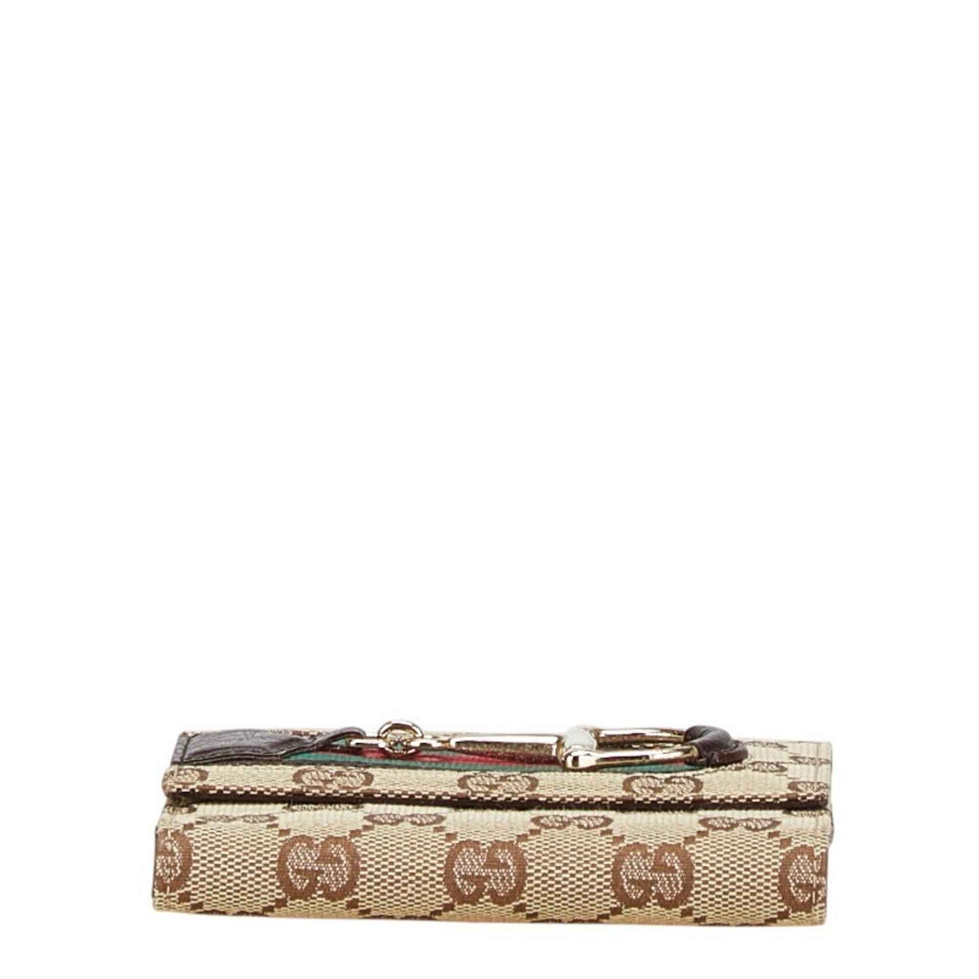 Gucci GG Canvas Horsebit Sherry Line Bifold Wallet 138031 Brown Leather Women\'s GUCCI