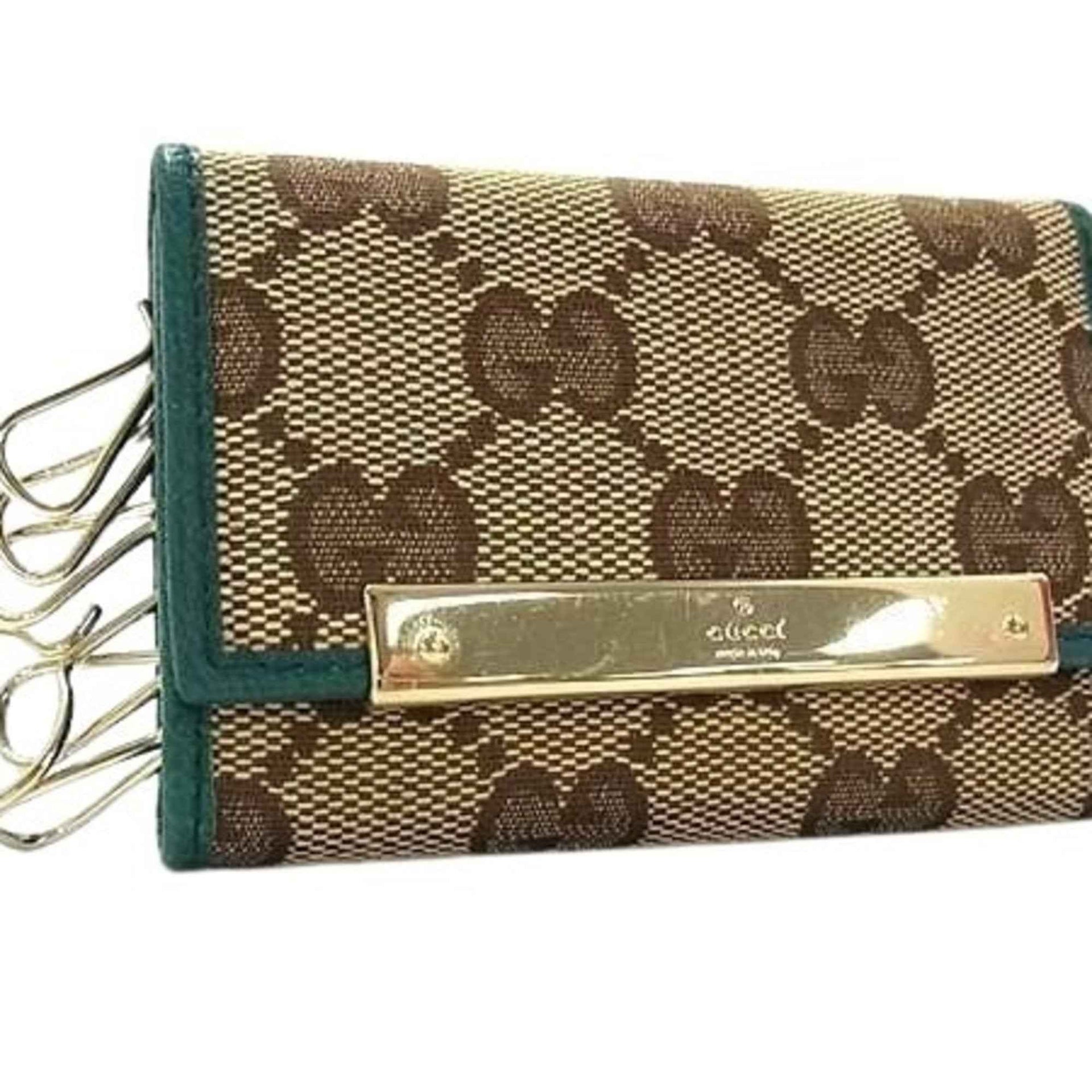 GUCCI GG Canvas Key Case 127048 Beige Brown Green Leather Men\'s Women\'s