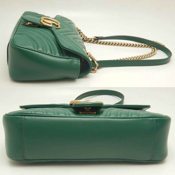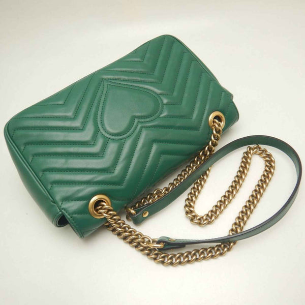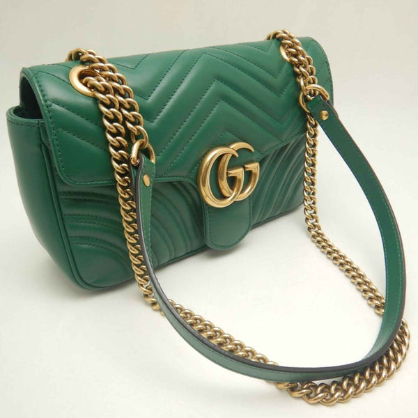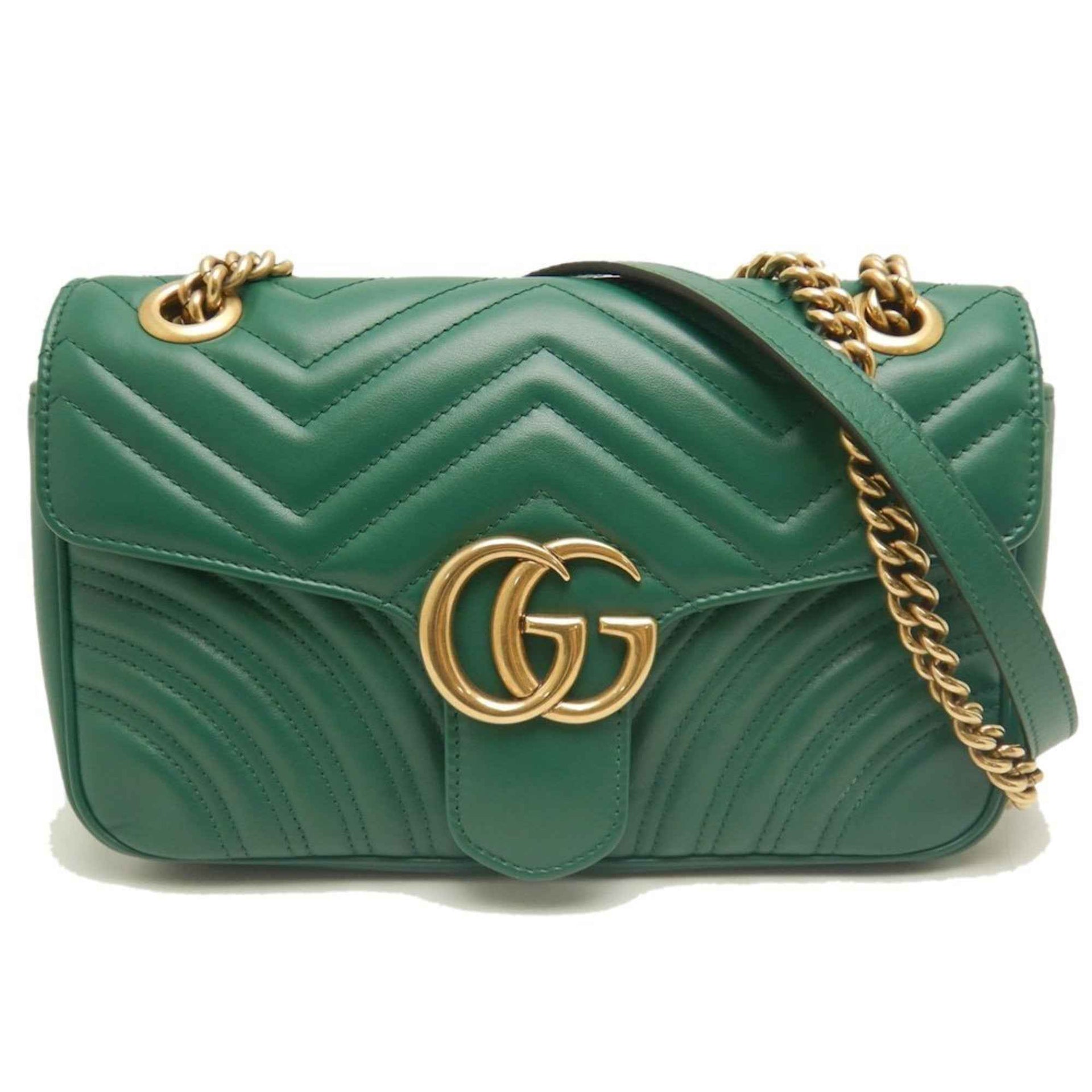 GUCCI GG Marmont Chain Shoulder Bag 443497, Green Leather, Women\'s, 253301
