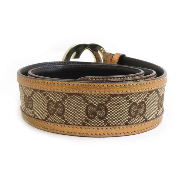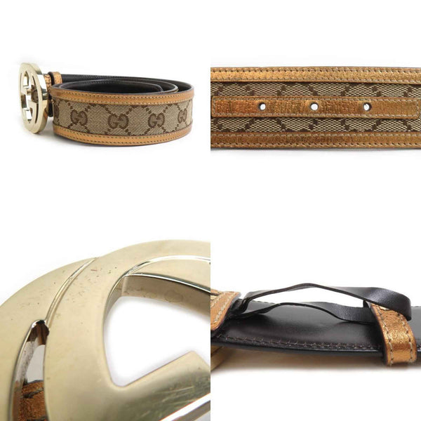 Gucci Interlocking G Belt in GG Canvas and Leather, Gold Brown, Men\'s Women\'s, 114876, r10839a
