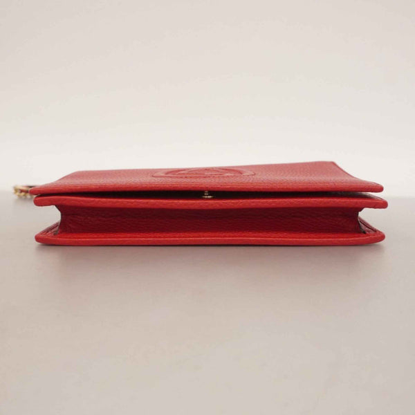 Gucci Interlocking G Shoulder Wallet 598211 Leather Red Champagne Women\'s