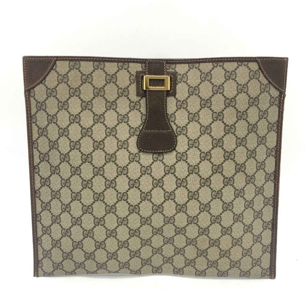 GUCCI Old Gucci Flat Clutch Bag, All-Over Print, Second GG Supreme Canvas, Women\'s, Brown