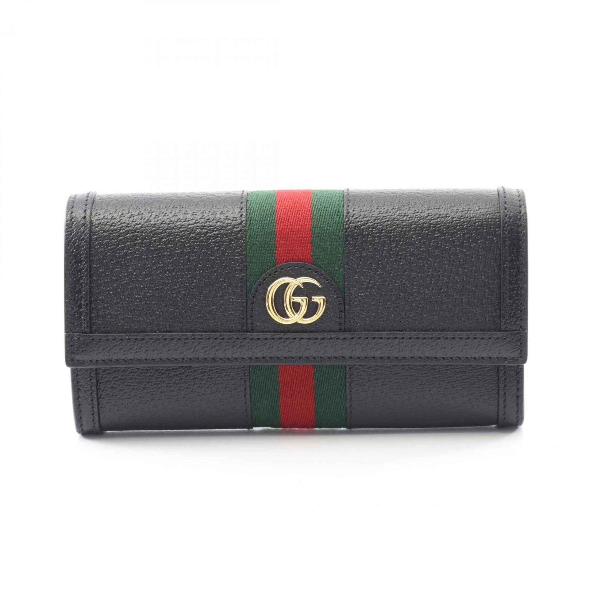 Gucci Ophidia Web Stripe Leather Bi-fold Long Wallet, Women\'s, Black, Green, Red, 719886