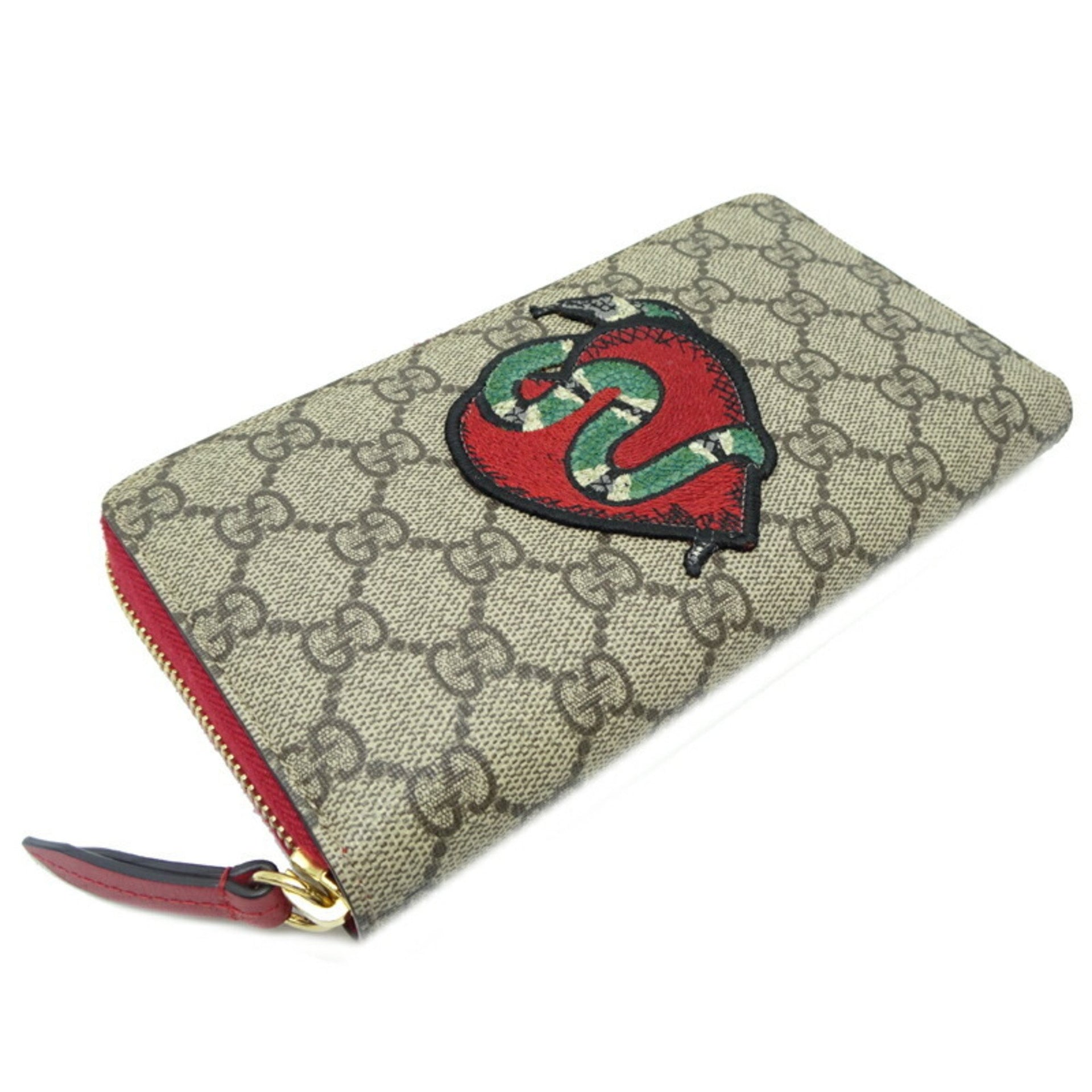 Gucci Snake Round Wallet Holiday Collection Women\'s and Men\'s Long 456863 GG Supreme Khaki (Green)