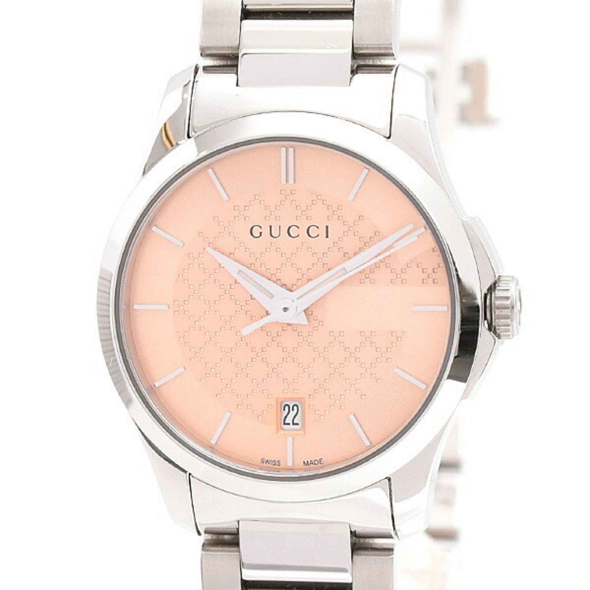 Gucci Women\'s G-Timeless Battery-Operated Watch with Salmon Pink Dial and Stainless Steel Case, YA126540
