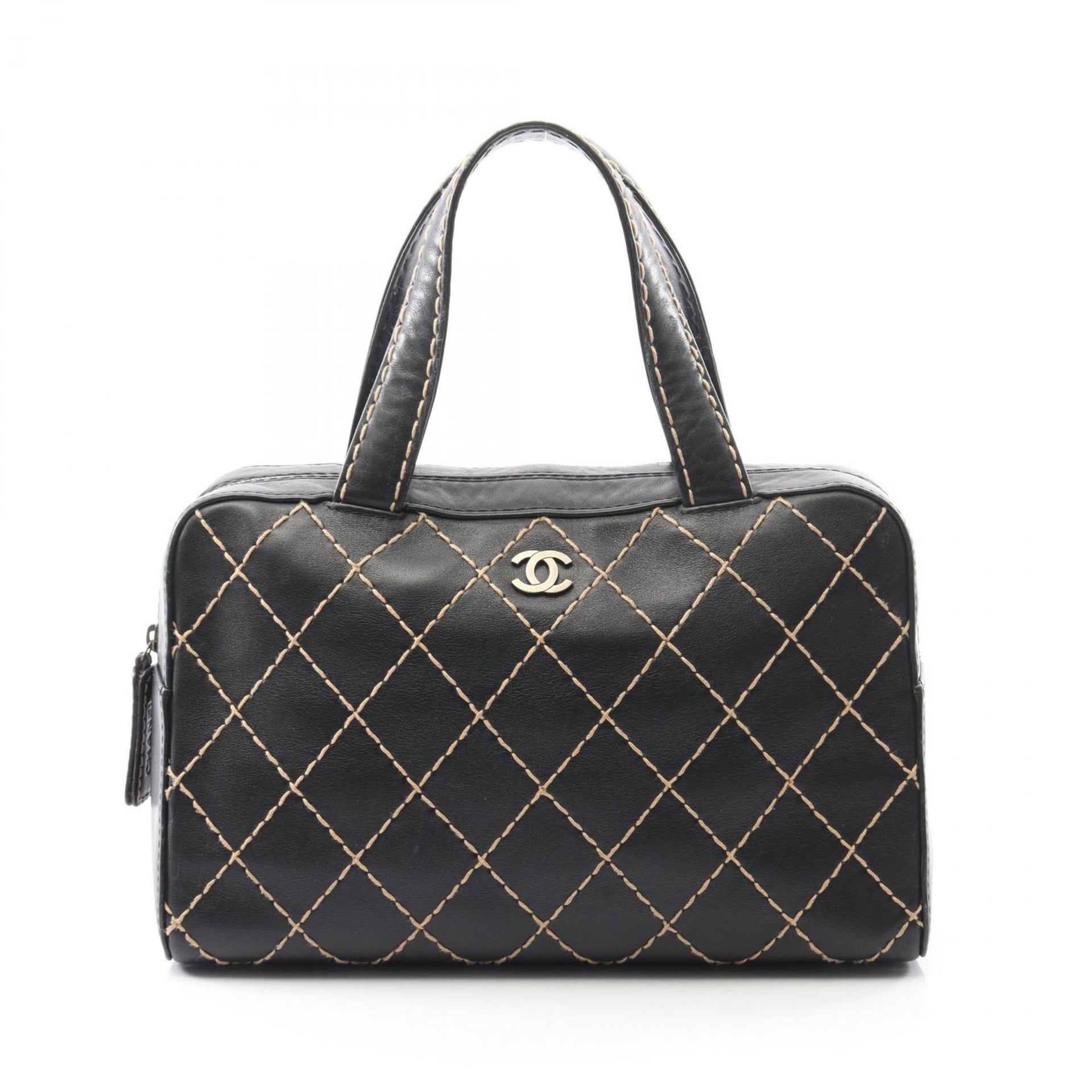 CHANEL Wild Stitch Handbag, Leather, Women\'s, Black