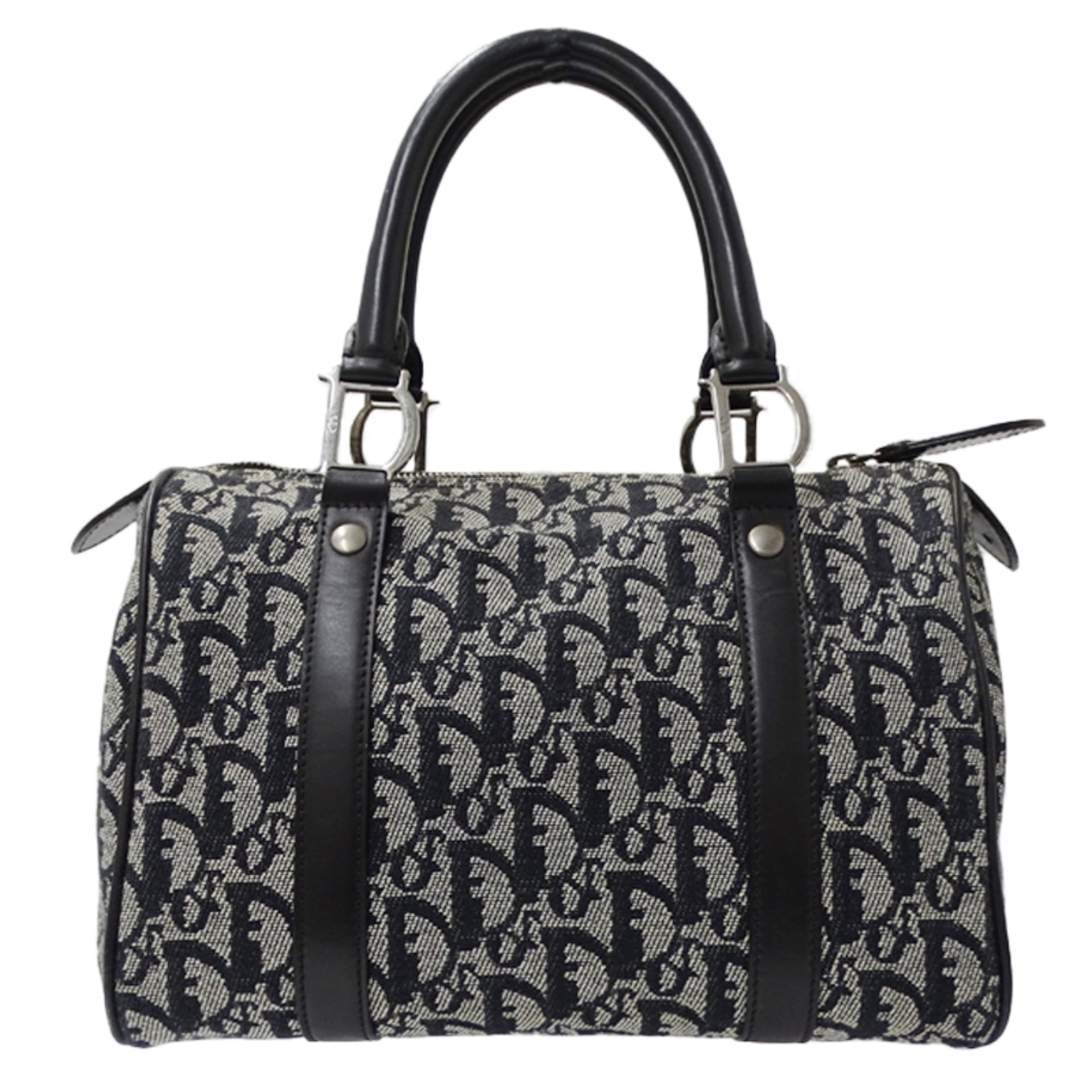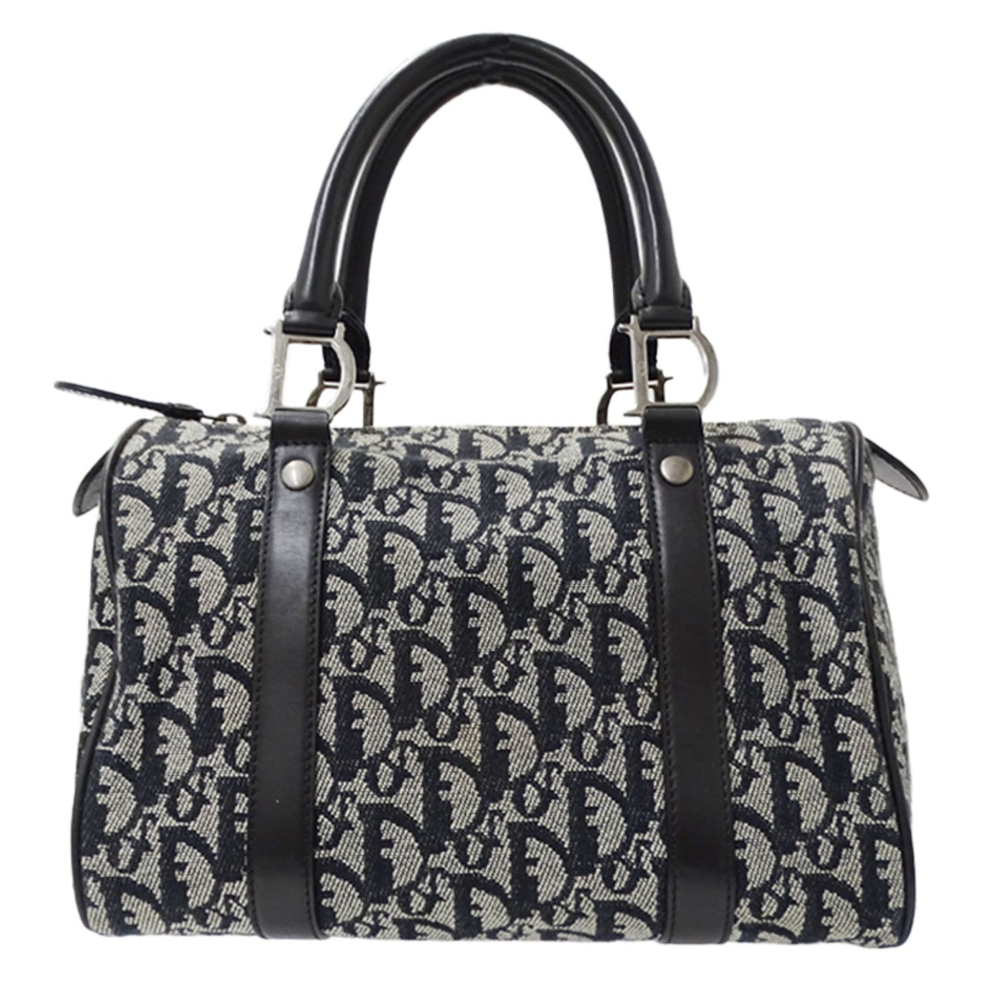 Christian Dior Dior Trotter Handbag, Women\'s Canvas, Black Oblique Mini Boston Bag