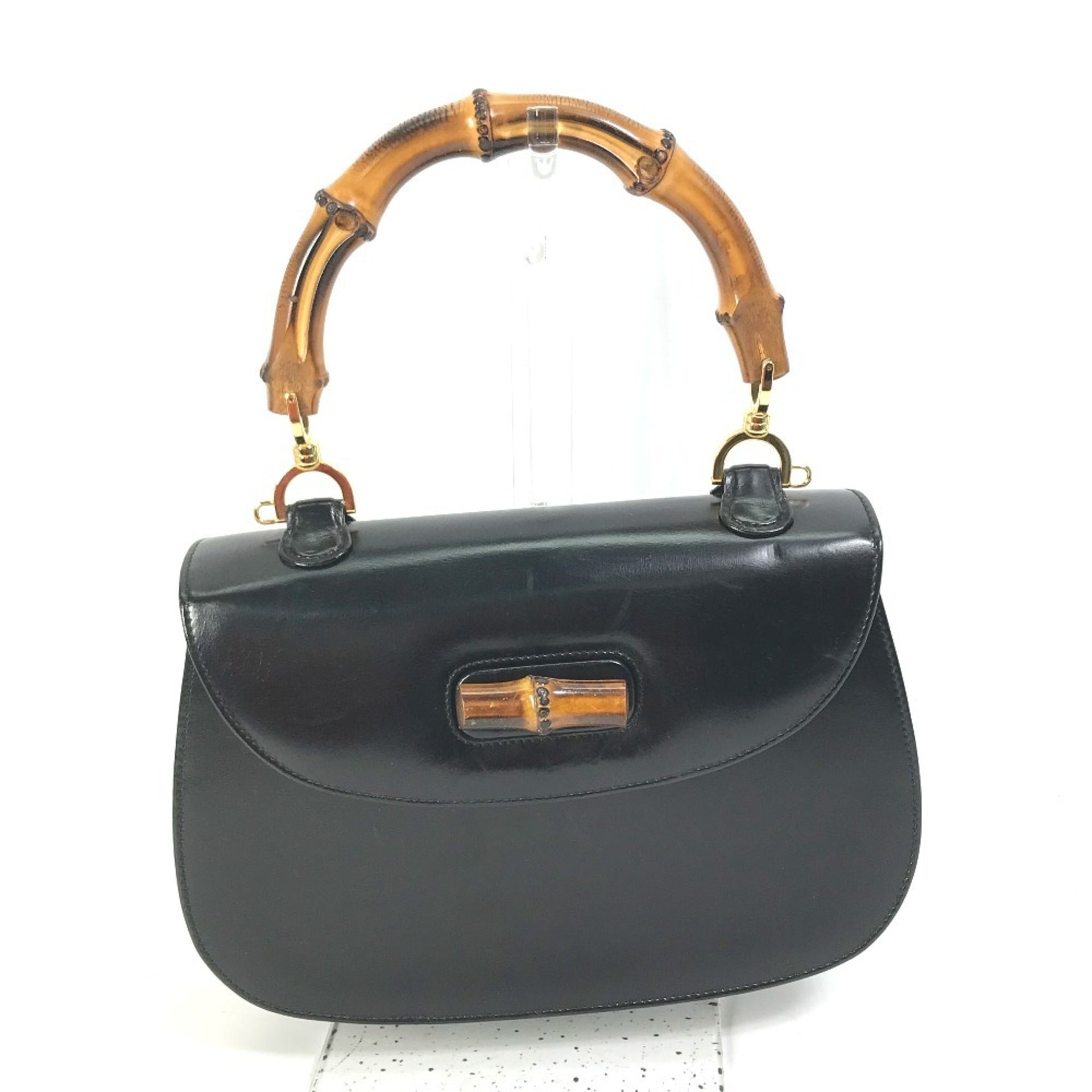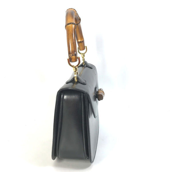 GUCCI 000 1951 Turnlock Old Gucci Bamboo Top Handle Handbag in Leather/Bamboo, Women\'s, Black