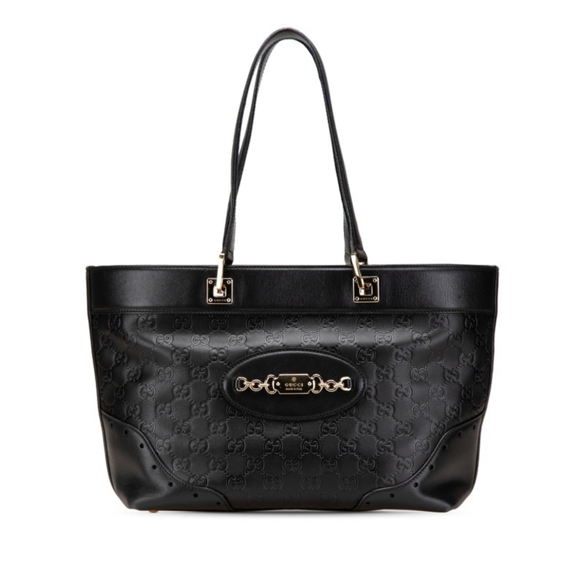 Gucci Guccissima Horsebit Handbag Tote Bag 145993 Black Leather Women\'s GUCCI