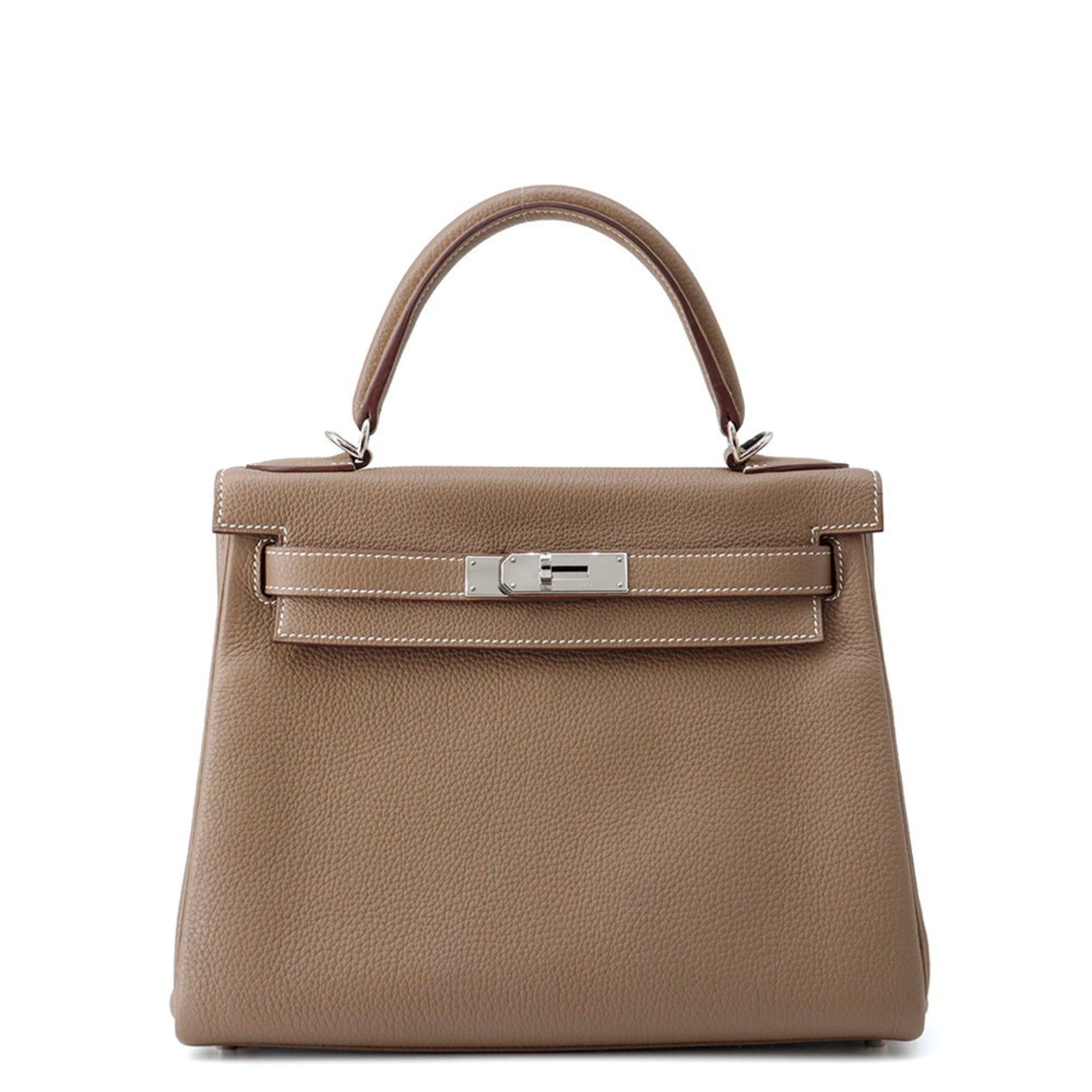 Hermès Kelly 28 handbag with inner stitching, Etoupe Togo leather, and X stamp. This 2-way bag is perfect for anyone looking a HERMES bag.