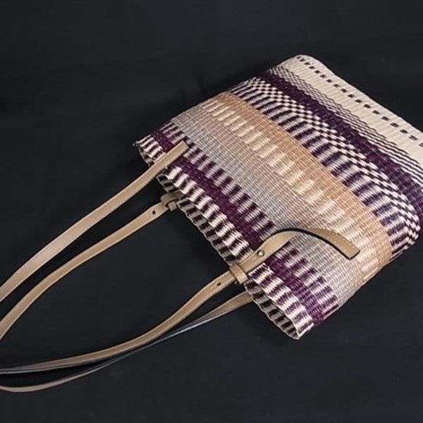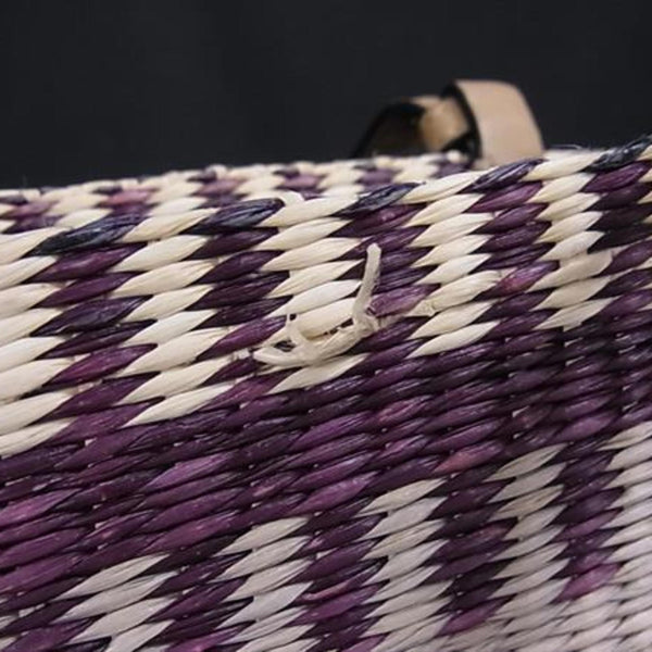 LOEWE Square Basket Handbag in Beige and Purple Raffia Leather with Anagram Design