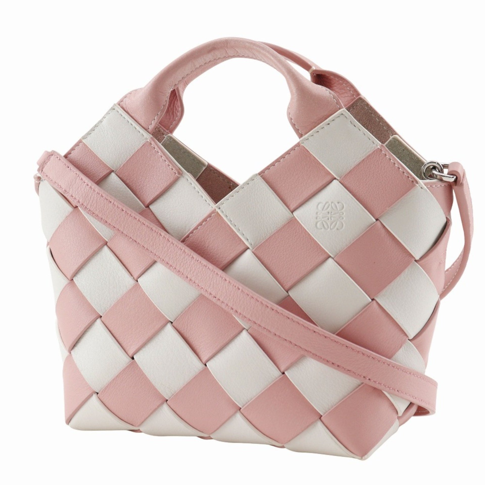 LOEWE Woven Basket Small Handbag in Calfskin, Pink/White, 2-Way, Women\'s