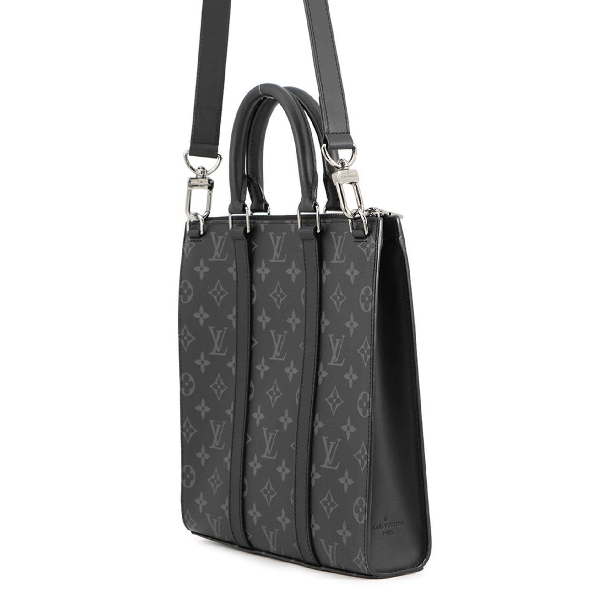 Louis Vuitton Monogram Eclipse Sac Plat Cross Handbag M46456 2-way Black Shoulder Bag