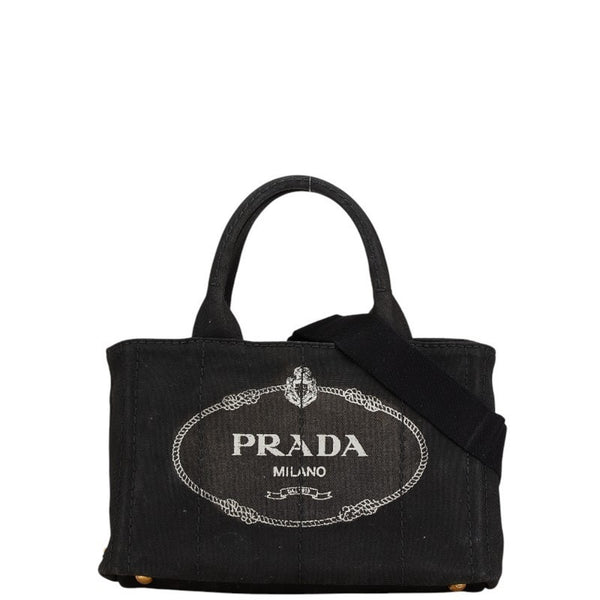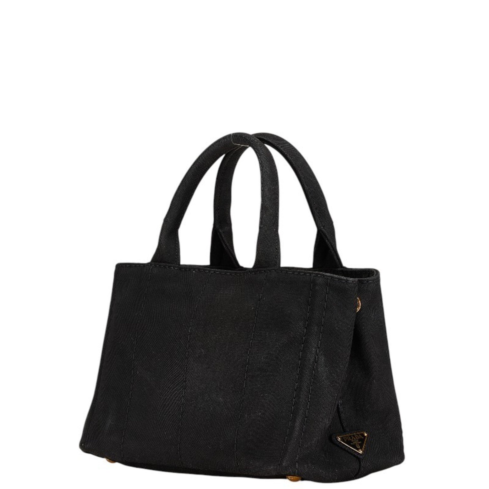 Prada Canapa Triangle Logo Plate Handbag/Shoulder Bag, 2-Way, Black Canvas, Women\'s, PRADA