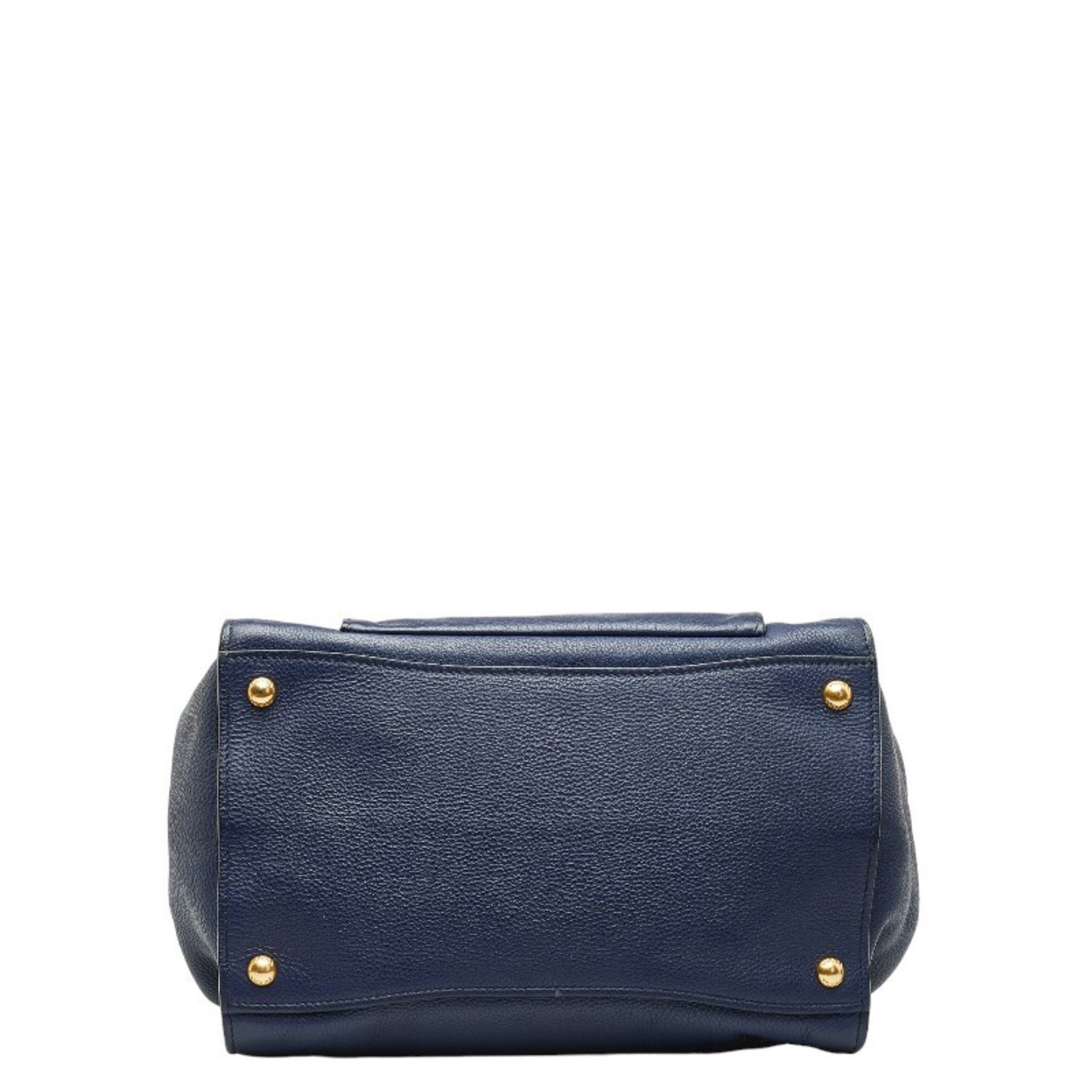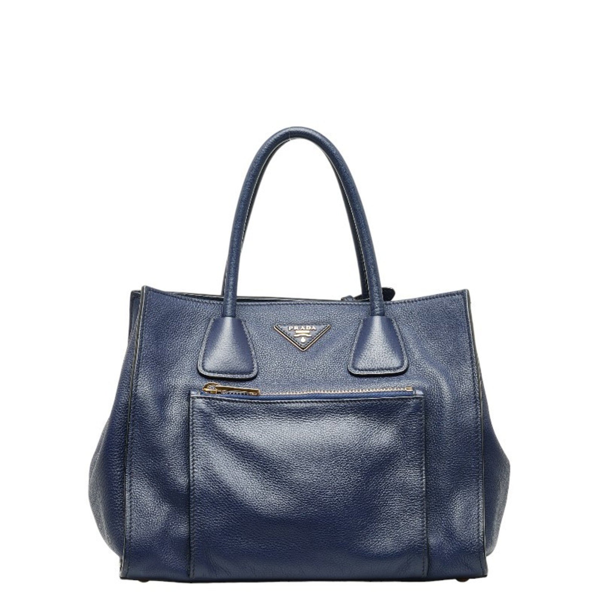 Prada Triangle Logo Plate Handbag BN2795 Bluette Calf Leather Women\'s PRADA