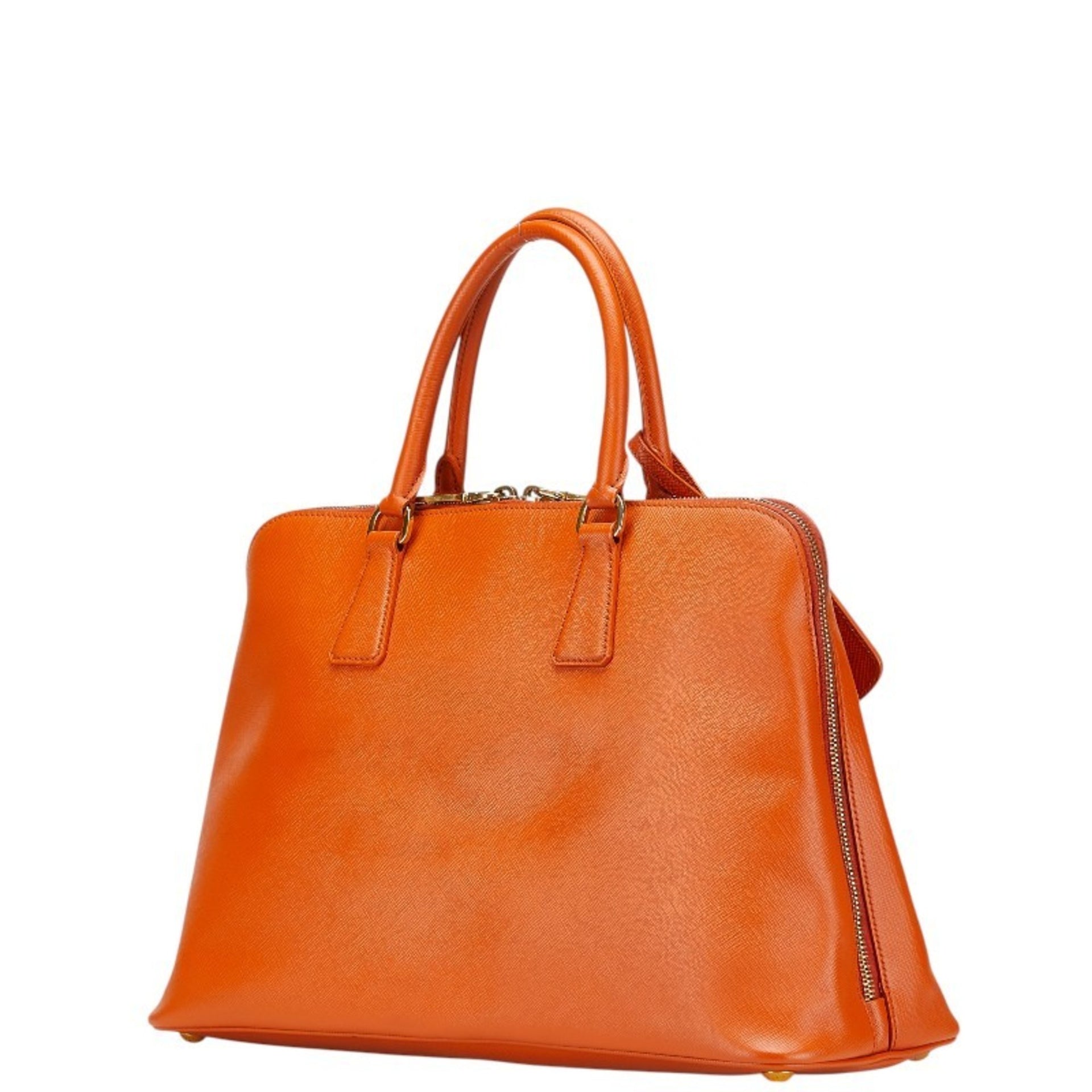 Prada Triangle Logo Plate Handbag Orange Leather Women\'s PRADA