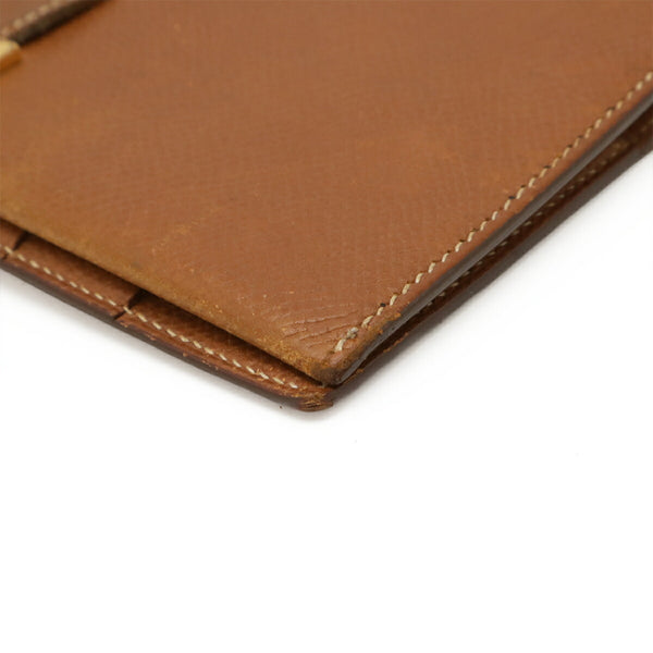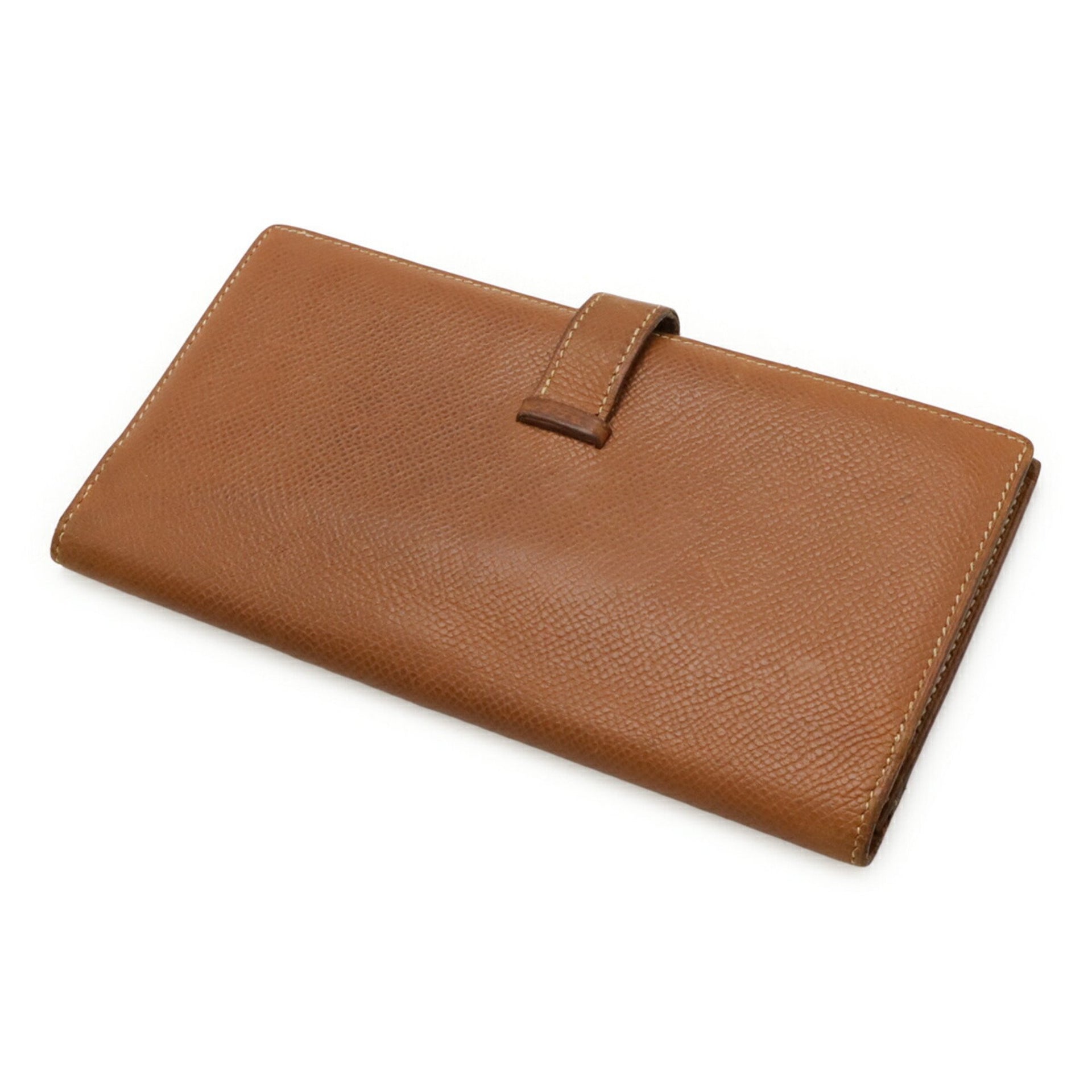 HERMES Bearn Classic Bi-fold Long Wallet, Epsom Leather, Gold and Brown, with a \"Y\" Stamp