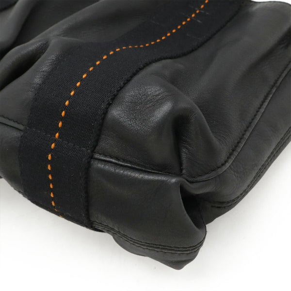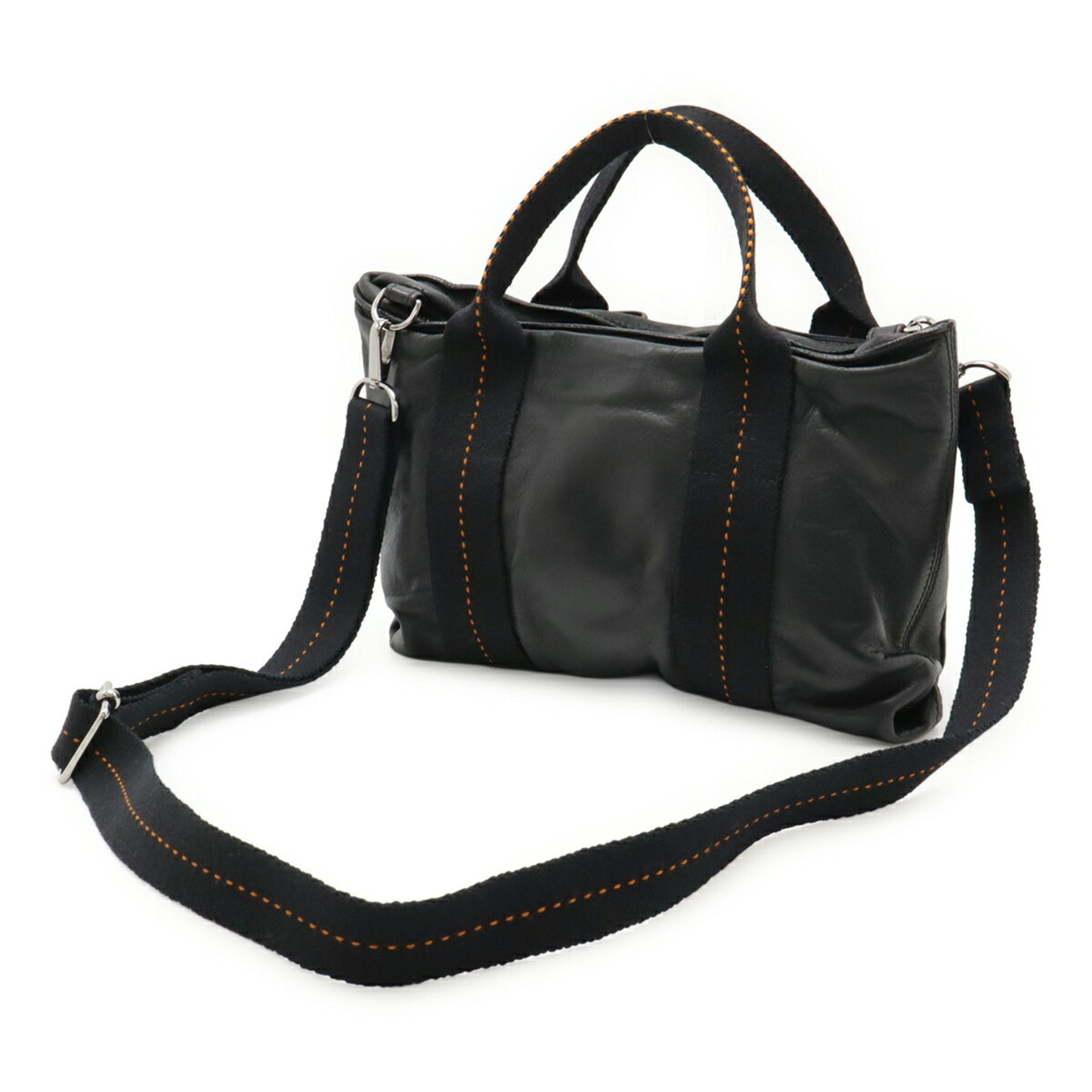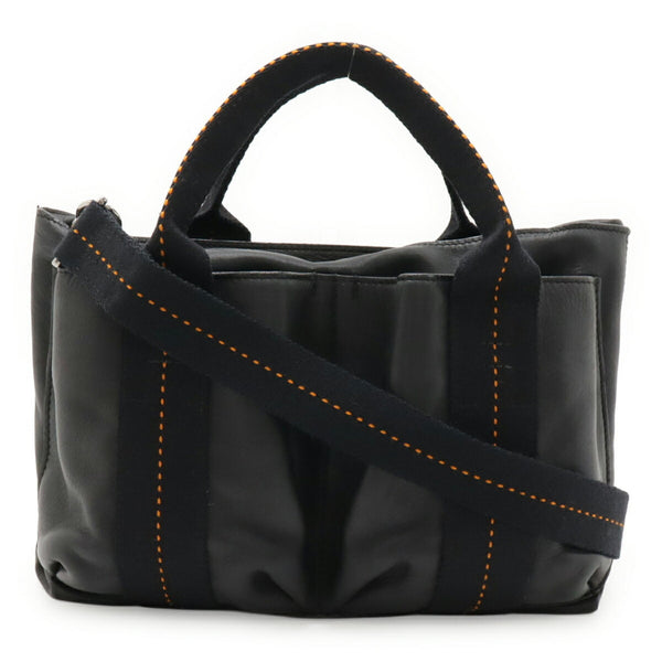 HERMES Caravan Horizontal PM Tote Bag/Shoulder Bag in Veau Derma Leather, Black and Orange