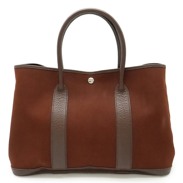 HERMES Garden PM Tote Bag, Toile Officier Leather, Reddish Brown and Bordeaux, □I Stamp