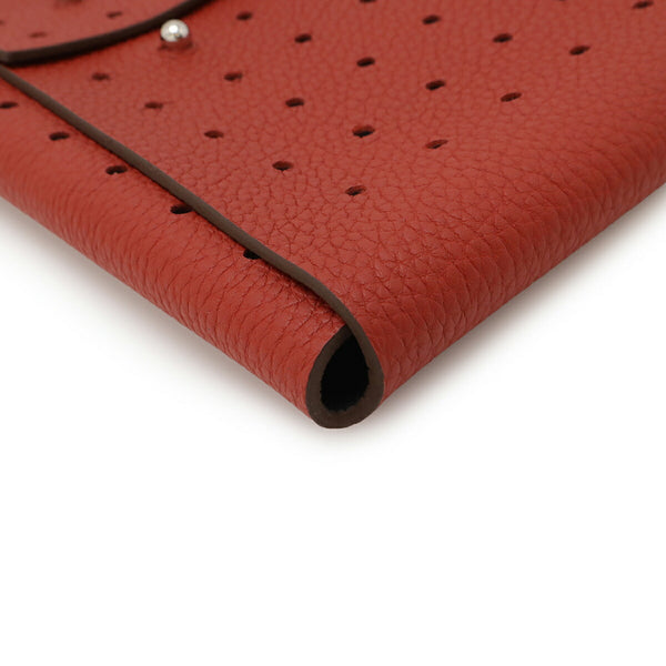 HERMES Perforated Pouch Tablet Case Multi-Pouch Taurillon Clemence Leather Red