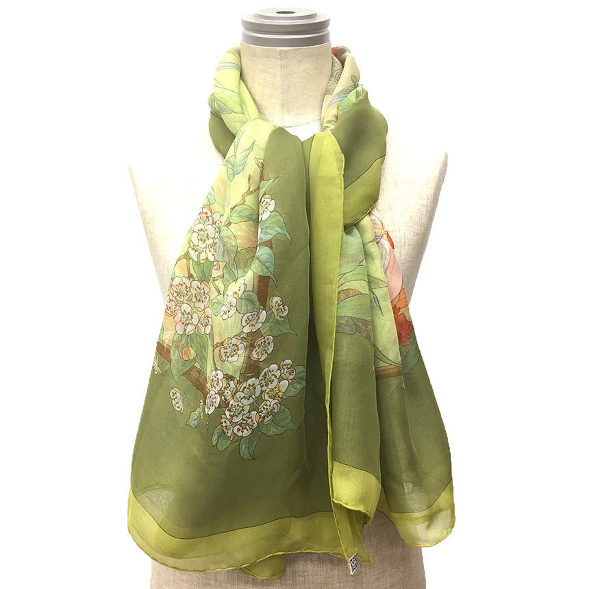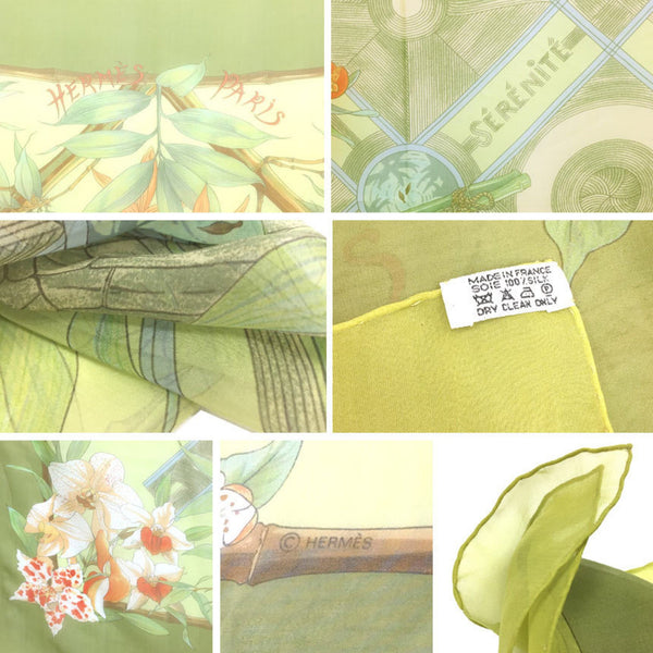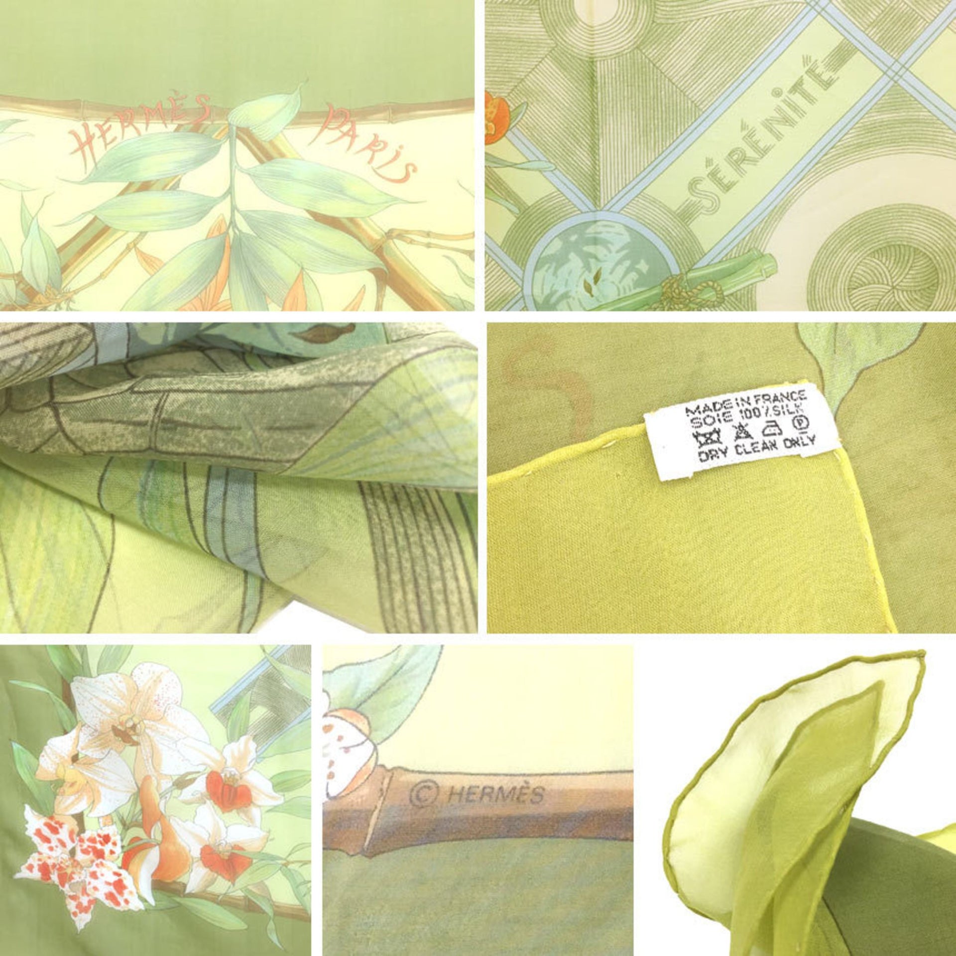 HERMES Shawl Carré 140 Scarf/Muffler, Silk Muslin, Serenite, Bamboo, 100% Silk, Green, aq11764