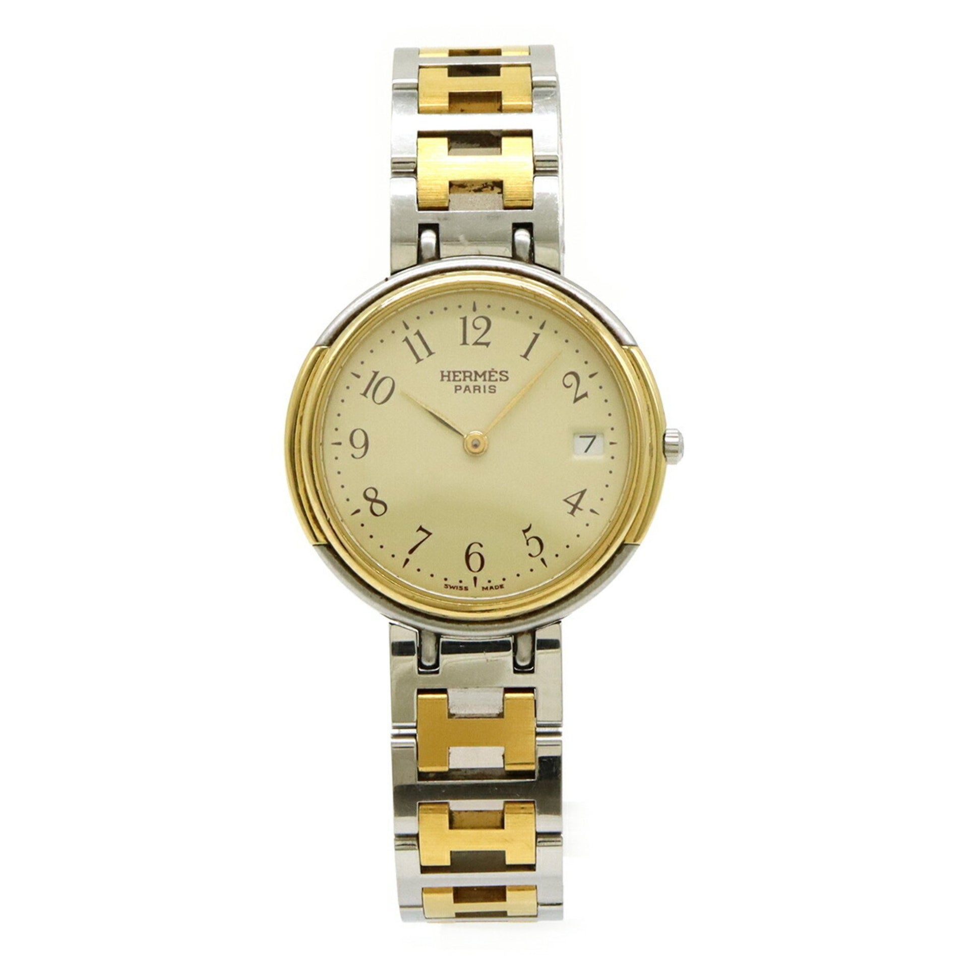 HERMES Windsor Date Ivory Dial Two-Tone GP Stainless Steel Men\'s Quartz Watch