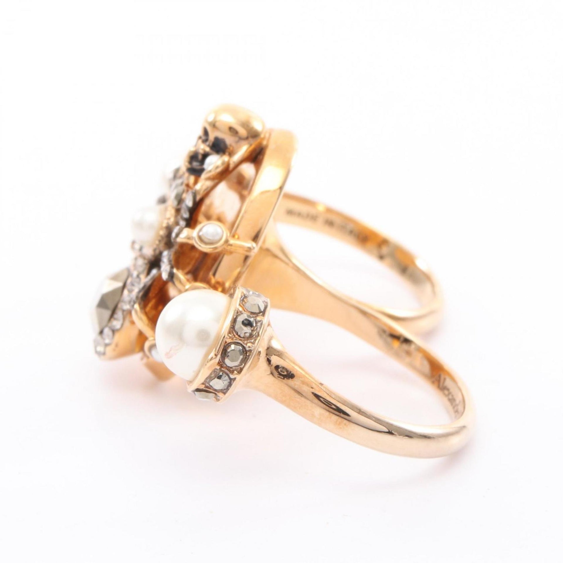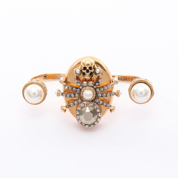 Alexander McQueen Spider Ring, Gold-Plated, with Faux Pearl and Rhinestones, Available in Gold, White, Clear.