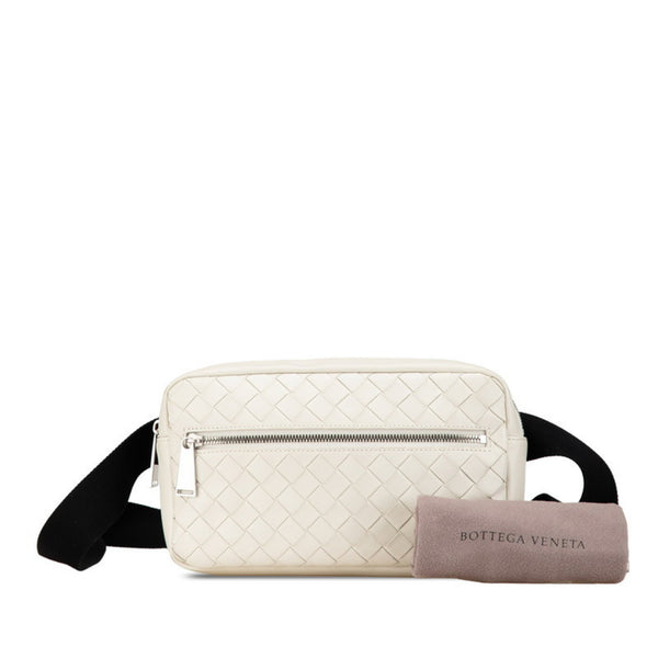 Bottega Veneta Intrecciato Waist Bag Crossbody 60106 White Leather Men\'s BOTTEGAVENETA