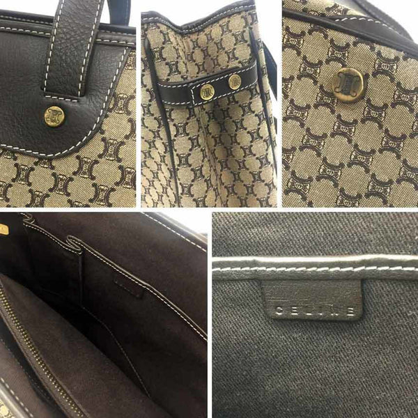 CELINE Tote Bag Macadam Canvas Leather Beige x Brown Women\'s