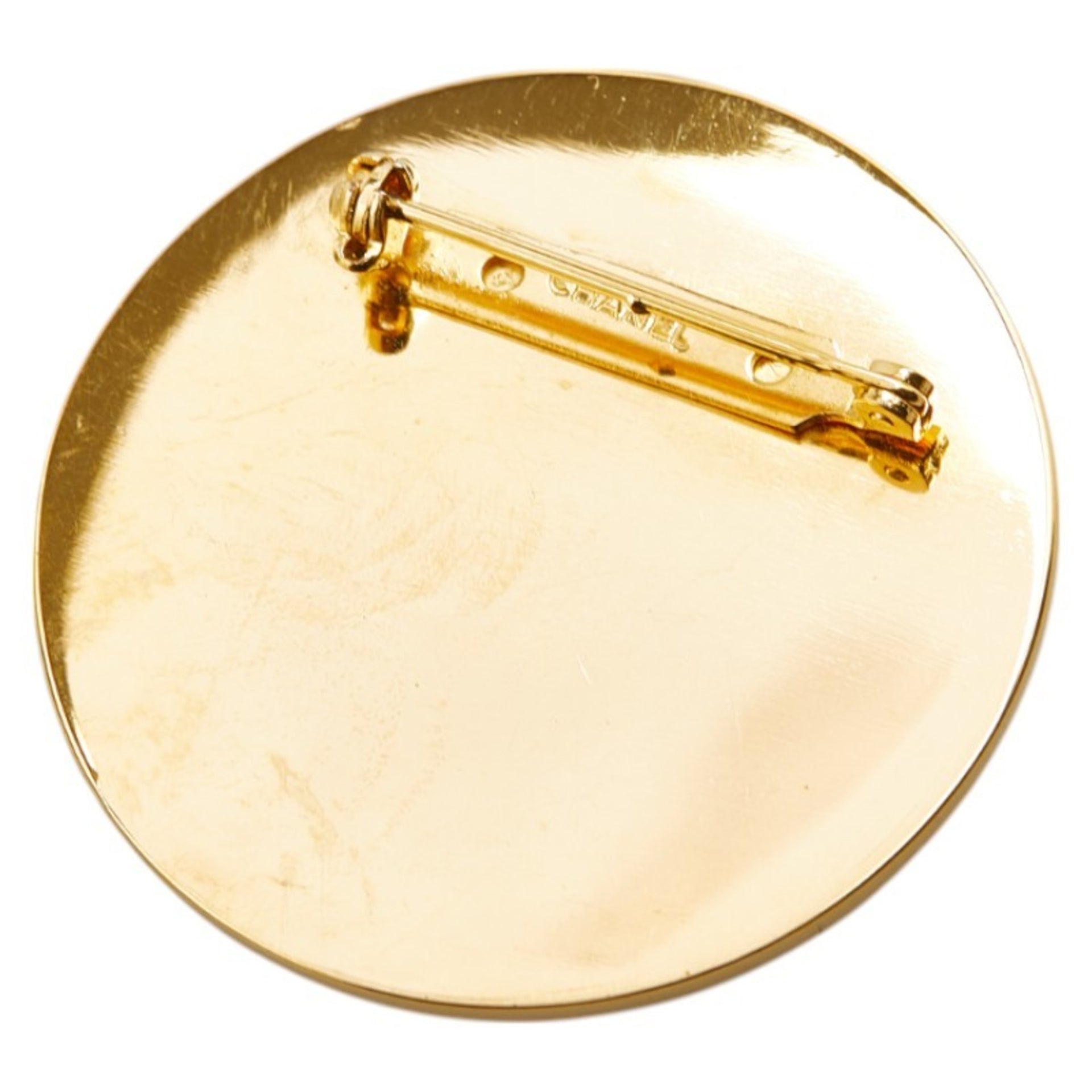 CHANEL Coco Mark 31 RUE CAMBON PARIS Round Brooch in Gold and Black Plated for Women