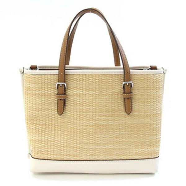 Coach Mori Tote 25 Handbag CJ574 Natural Ivory Brown Straw Leather Shoulder Bag Basket Floral Mini Women\'s COACH