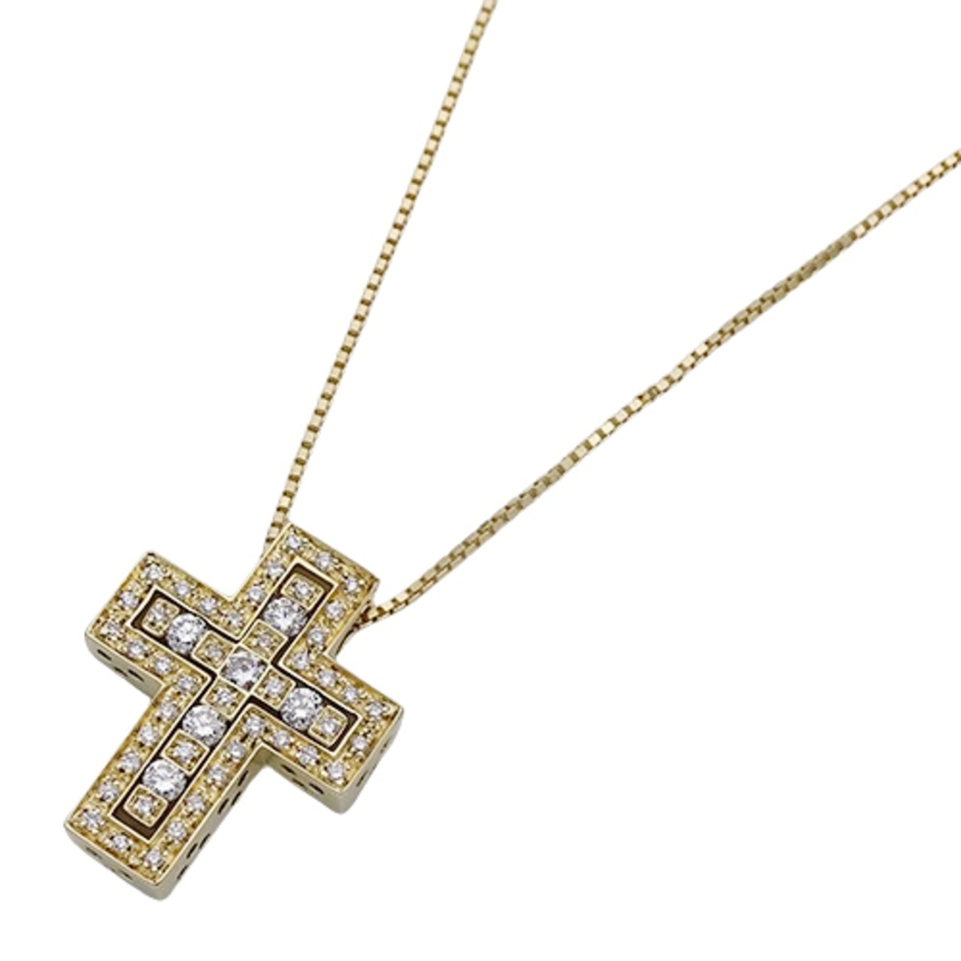 Damiani Belle Epoque 750YG Yellow Gold Cross Necklace with Diamonds, Polished, for Men and Women, Size XS