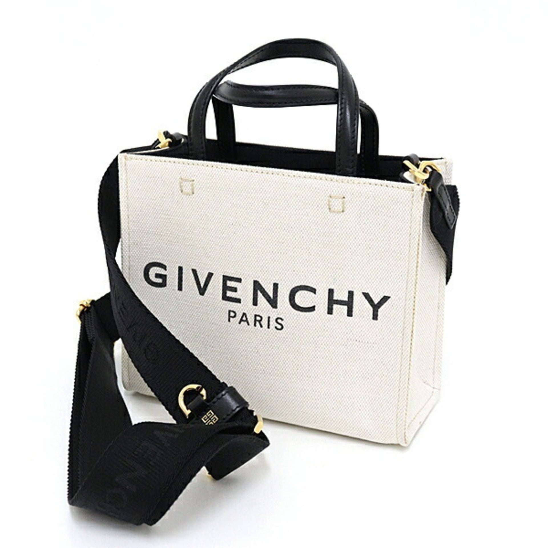 GIVENCHY G Tote Mini Beige/Black Linen & Cotton/Calf Shoulder 3WAY Unused
