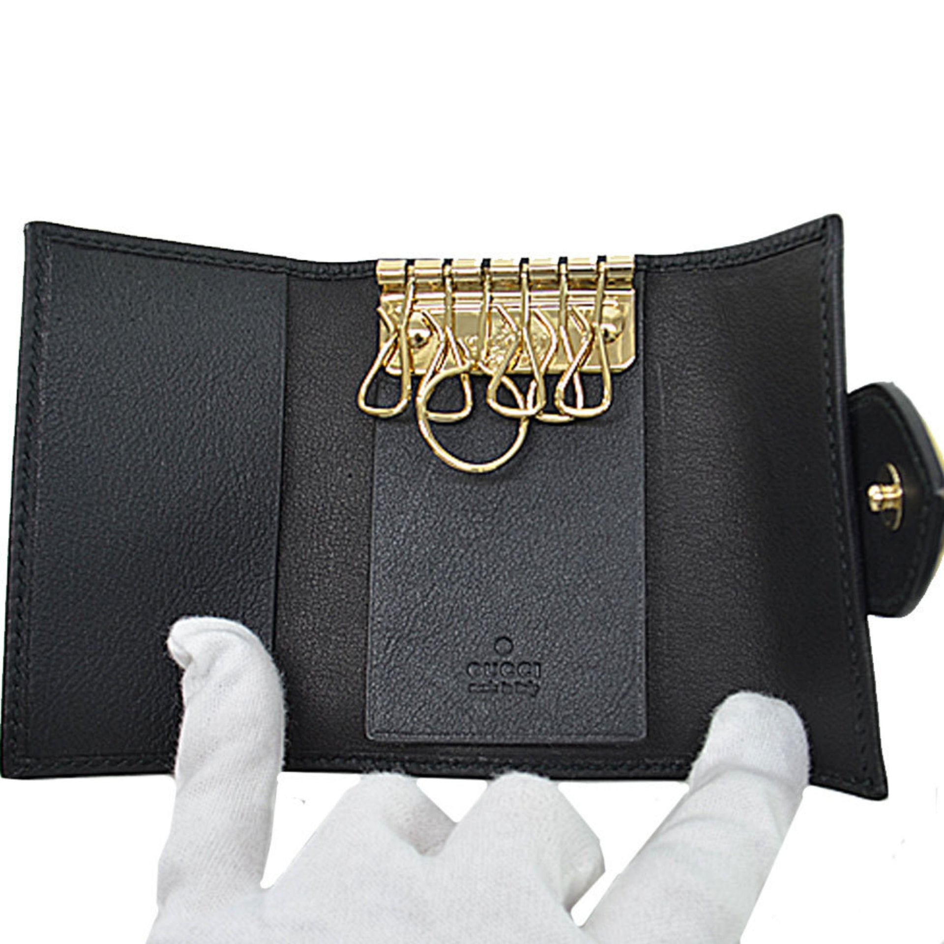 Gucci GUCCI 6 consecutive key case GG black x gold canvas leather metal material holder ladies 203551