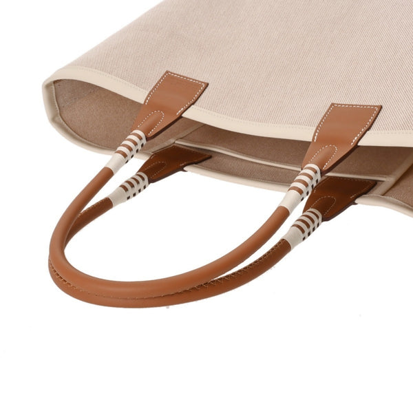 HERMES Steeple 28 Ecru/Gold B Stamp (circa 2023) Women\'s Toile/Swift Handbag, Like New