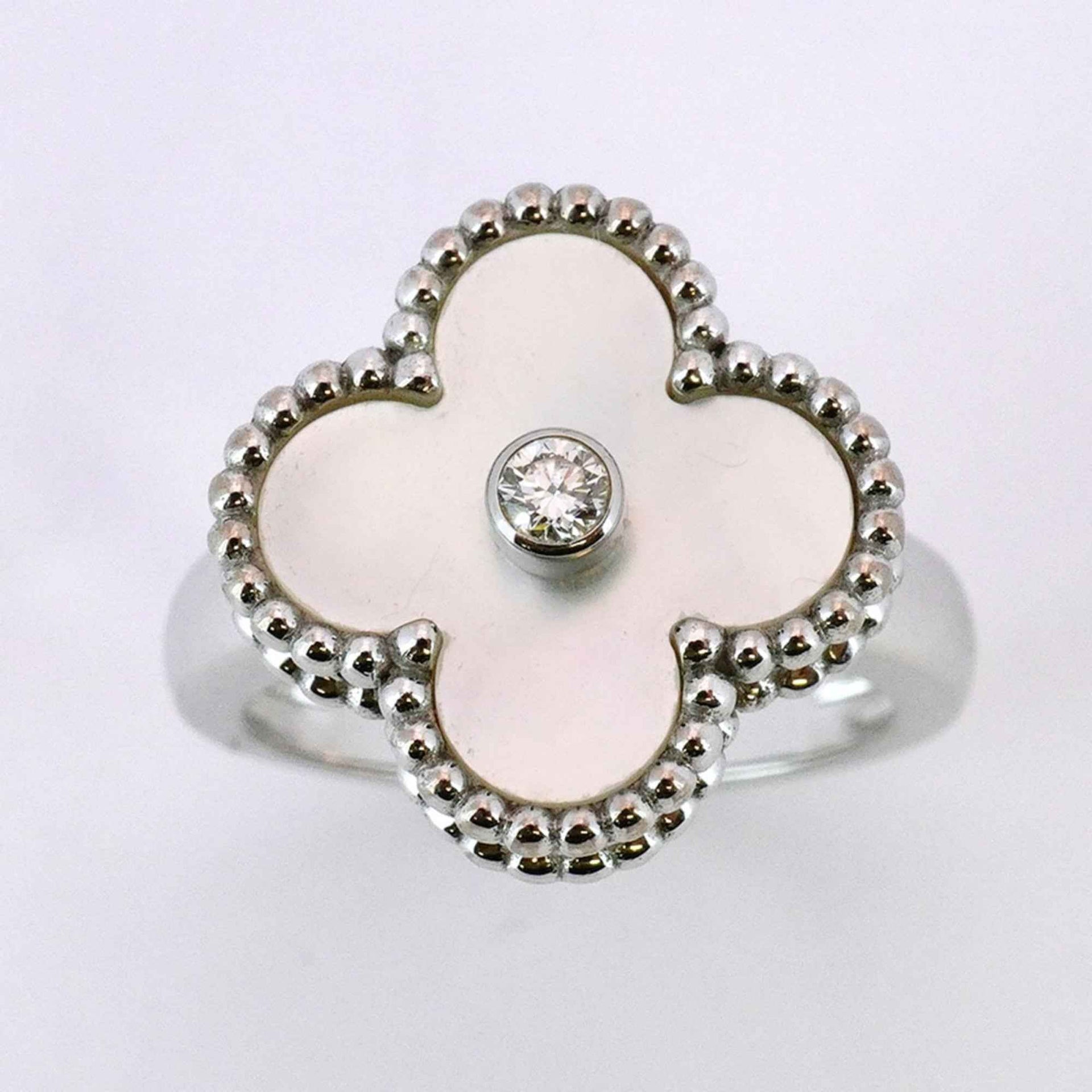 Van Cleef & Arpels Alhambra Ring, 1PD, 18K White Gold, Diamond, Mother-of-Pearl, #48, Women\'s