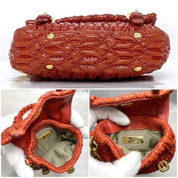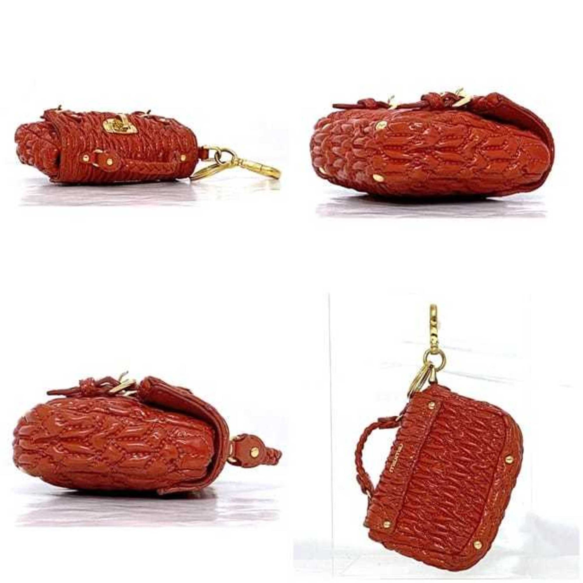 Miu Miu Miu Charm Pouch ec-23001 Red Matelasse Enamel 149 Key Holder Coin Case Mini Compact Women\'s Coins