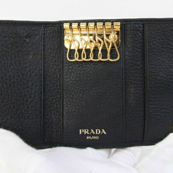 Prada 6-Key Case 1PG222 Black Leather Key Holder for Women