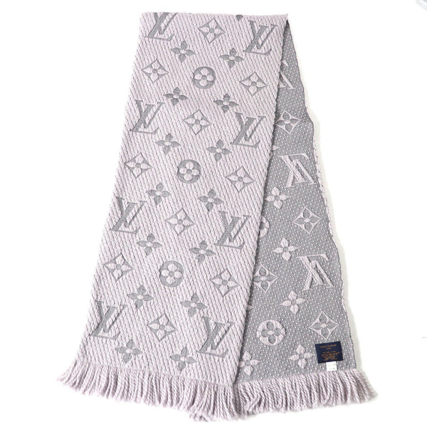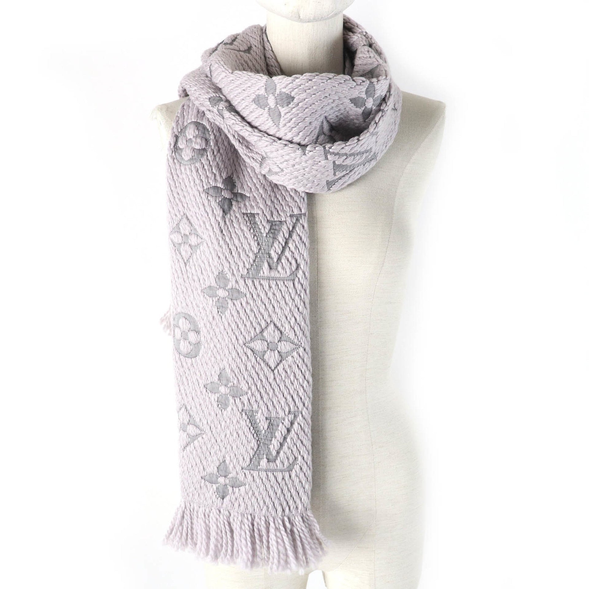 LOUIS VUITTON 2019 Echarpe Logomania Wool and Silk Fringe Scarf, M74742, Gris Perle, with Box, Made in Italy, Authentic, Women\'s, Very Popular