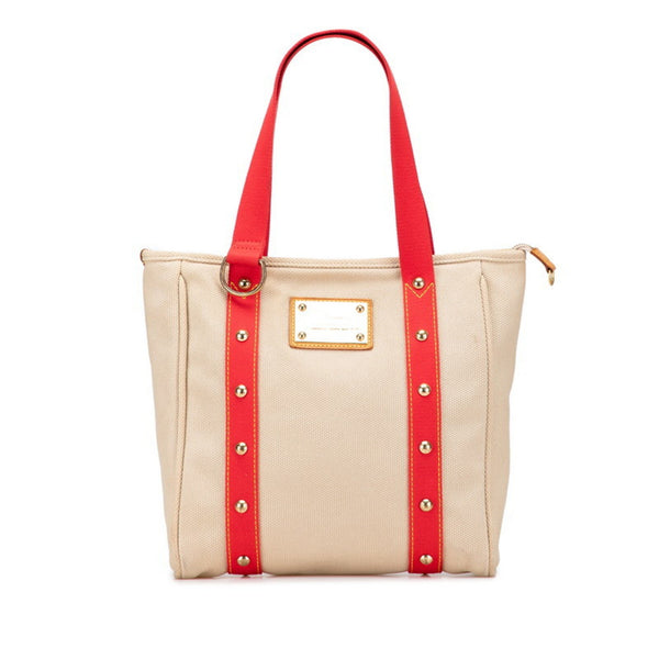 Louis Vuitton Antigua Cabas MM Tote Bag Shoulder M40035 Red Beige Canvas Leather Women\'s LOUIS VUITTON