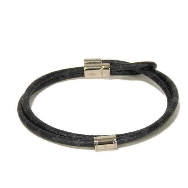 Louis Vuitton LOUIS VUITTON Bracelet LV Slide Initial Flower Black Monogram Eclipse Noir M8075 Men\'s