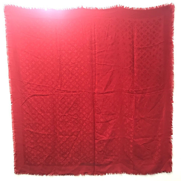 LOUIS VUITTON Louis Vuitton Monogram Large Fashion Accessory Stole Shawl Silk Wool Men Women Red