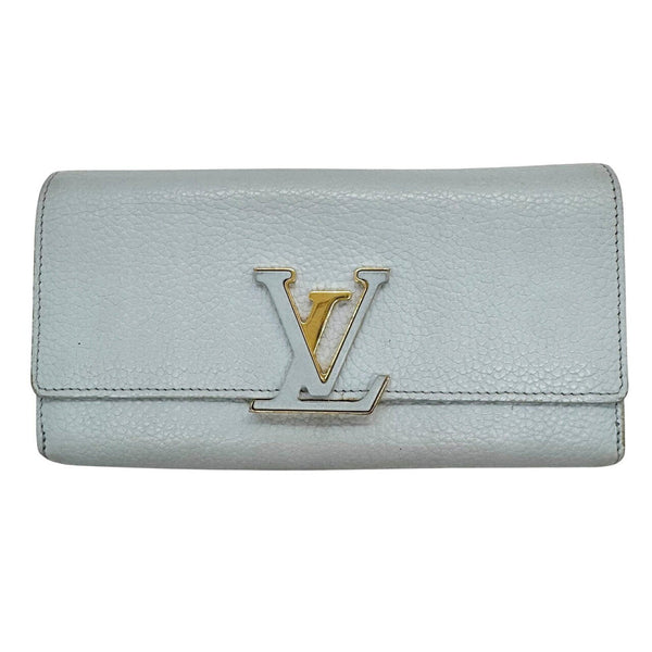 LOUIS VUITTON Louis Vuitton Portefeuille Capucines Long Wallet in Taurillon Leather, Light Blue, M69060 MI4179, Women\'s
