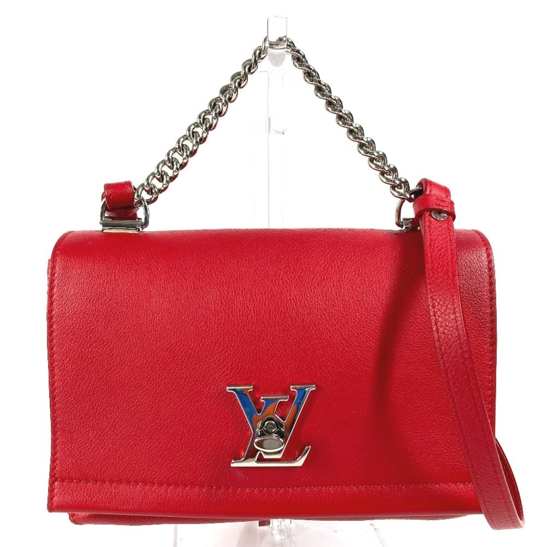 LOUIS VUITTON M51202 Lockme 2 BB 2-Way Bag, Chain Shoulder Handbag, Calfskin Leather, Women\'s, Ruby Red